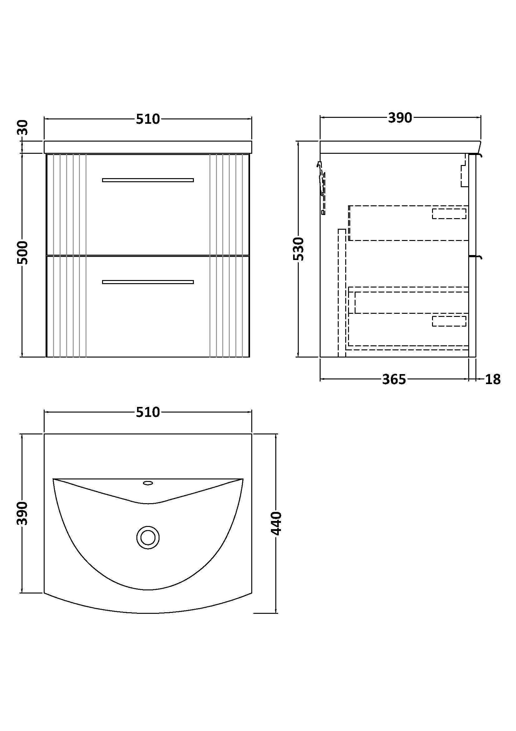 500mm Wall Hung 2 Drawer Vanity & Basin 4