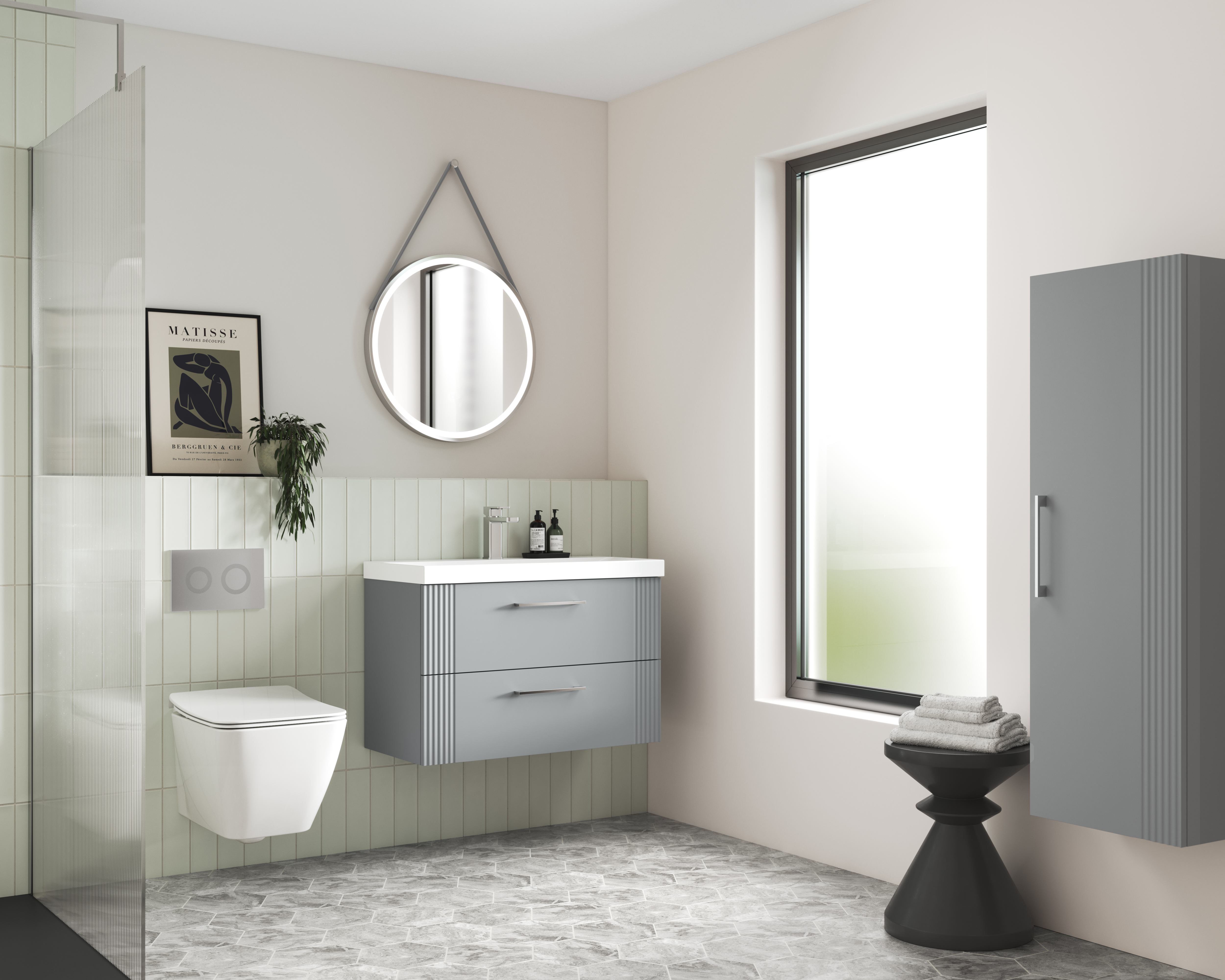 Part fluted design ideal for a striking art deco styled bathroom.