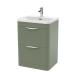 Nuie 600mm Satin Green Floor Standing 2 Drawer Vanity Unit With Soft Close Drawers & Ceramic Basin