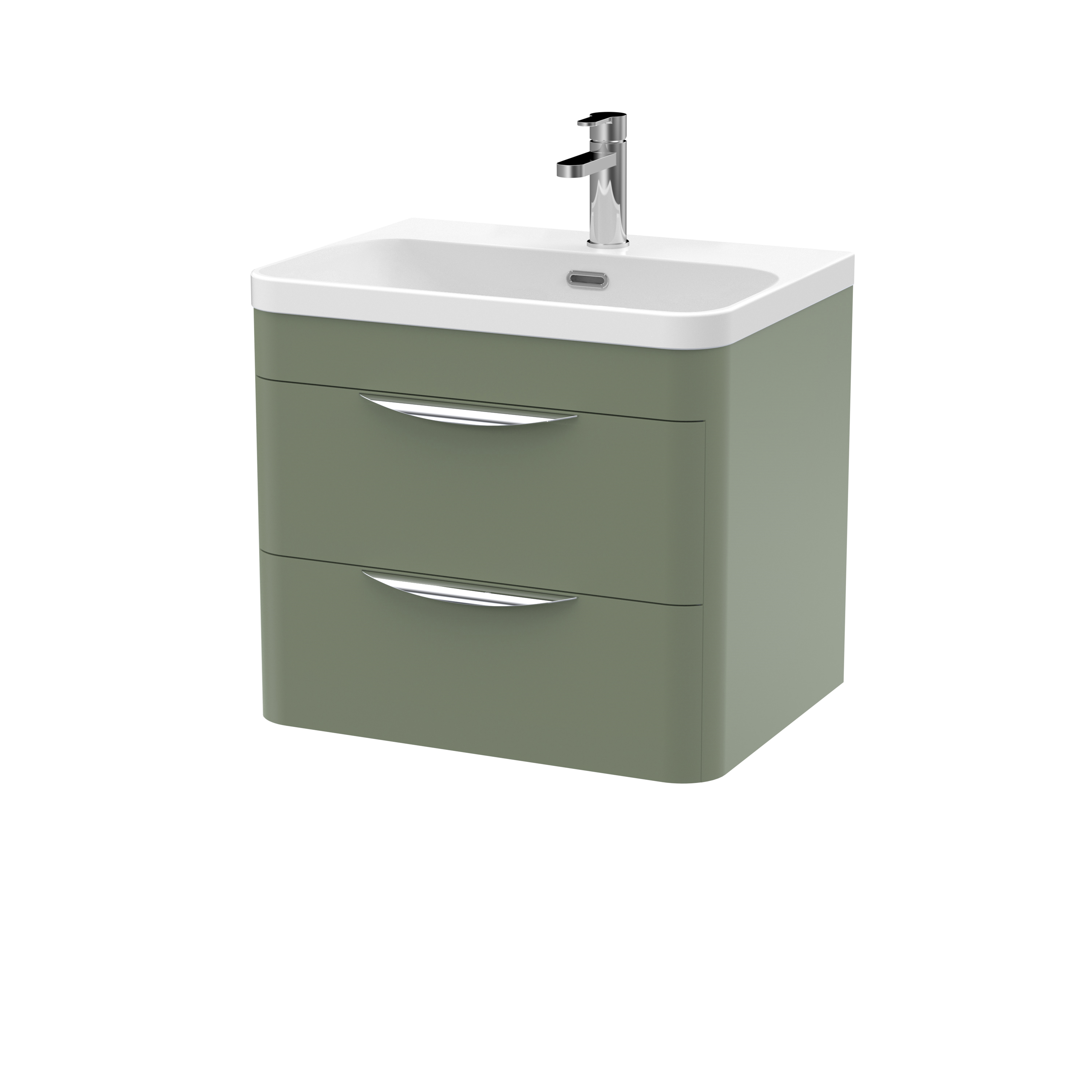 Nuie 600mm Satin Green Wall Hung 2 Drawer Vanity Unit With Ceramic Basin