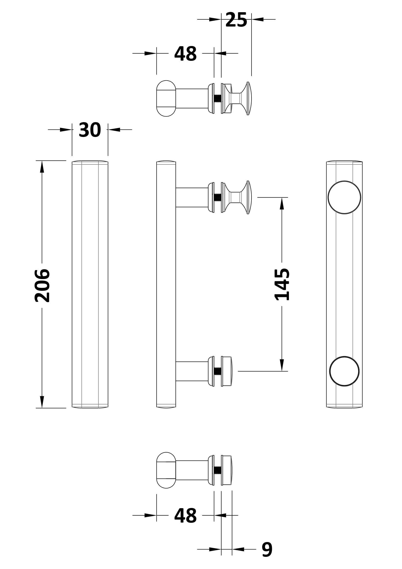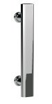 Square chrome handle for use with Pacific shower doors and enclosures.