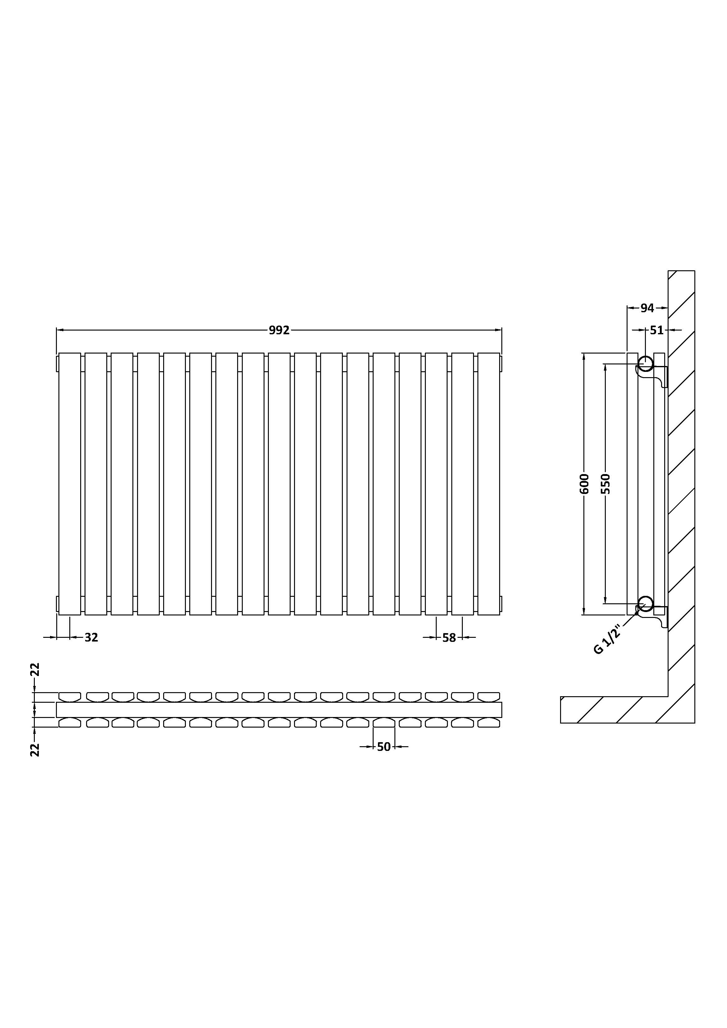 Horizontal Double Panel Radiator 600 x 992 by Ultra