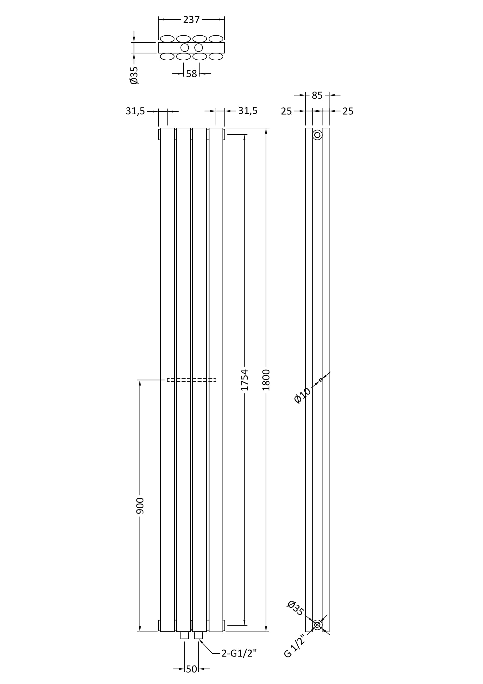 All tappings are 1/2 British Standard Pipe.