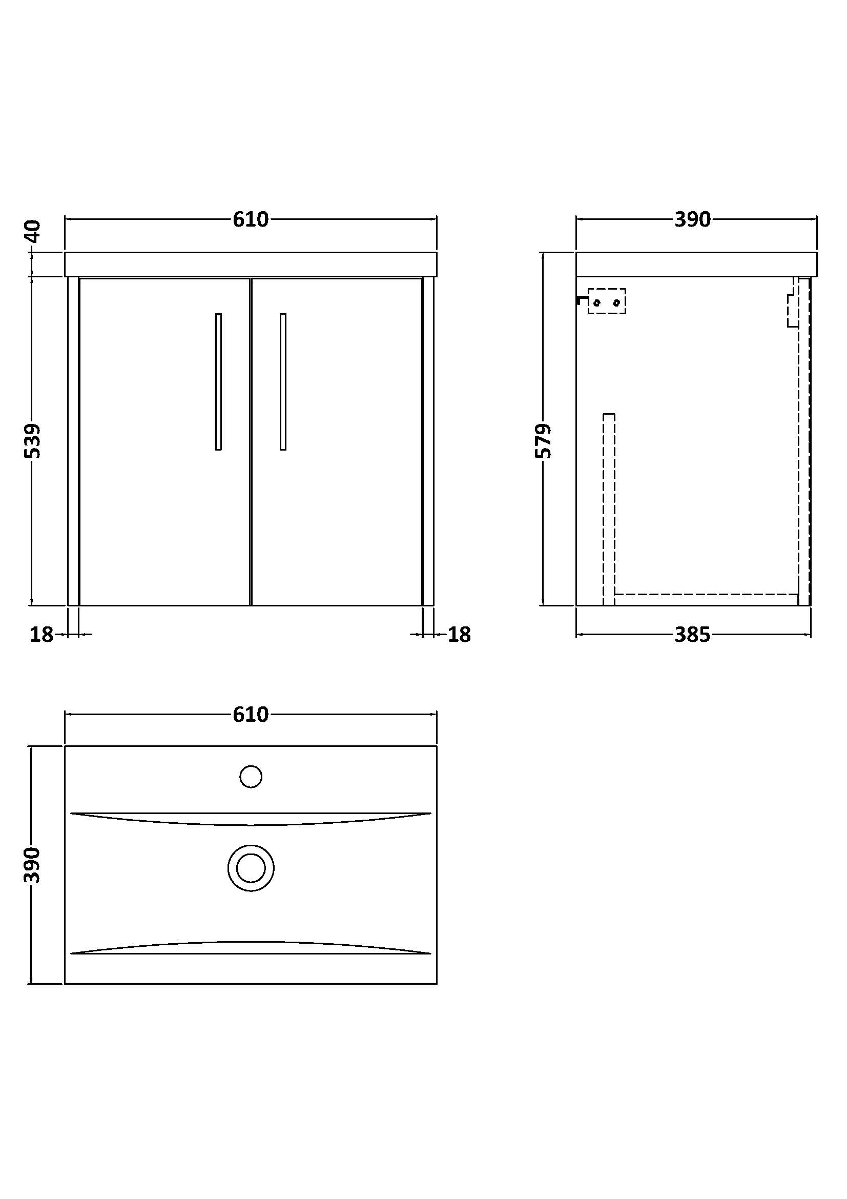 600mm Wall Hung 2 Door Vanity & Basin 1