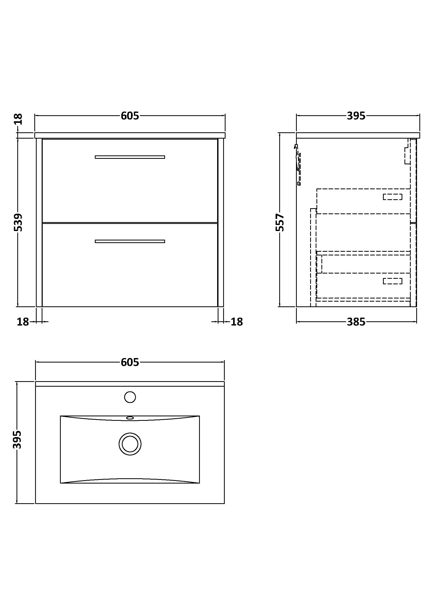 600mm Wall Hung 2 Drawer Vanity & Basin 2