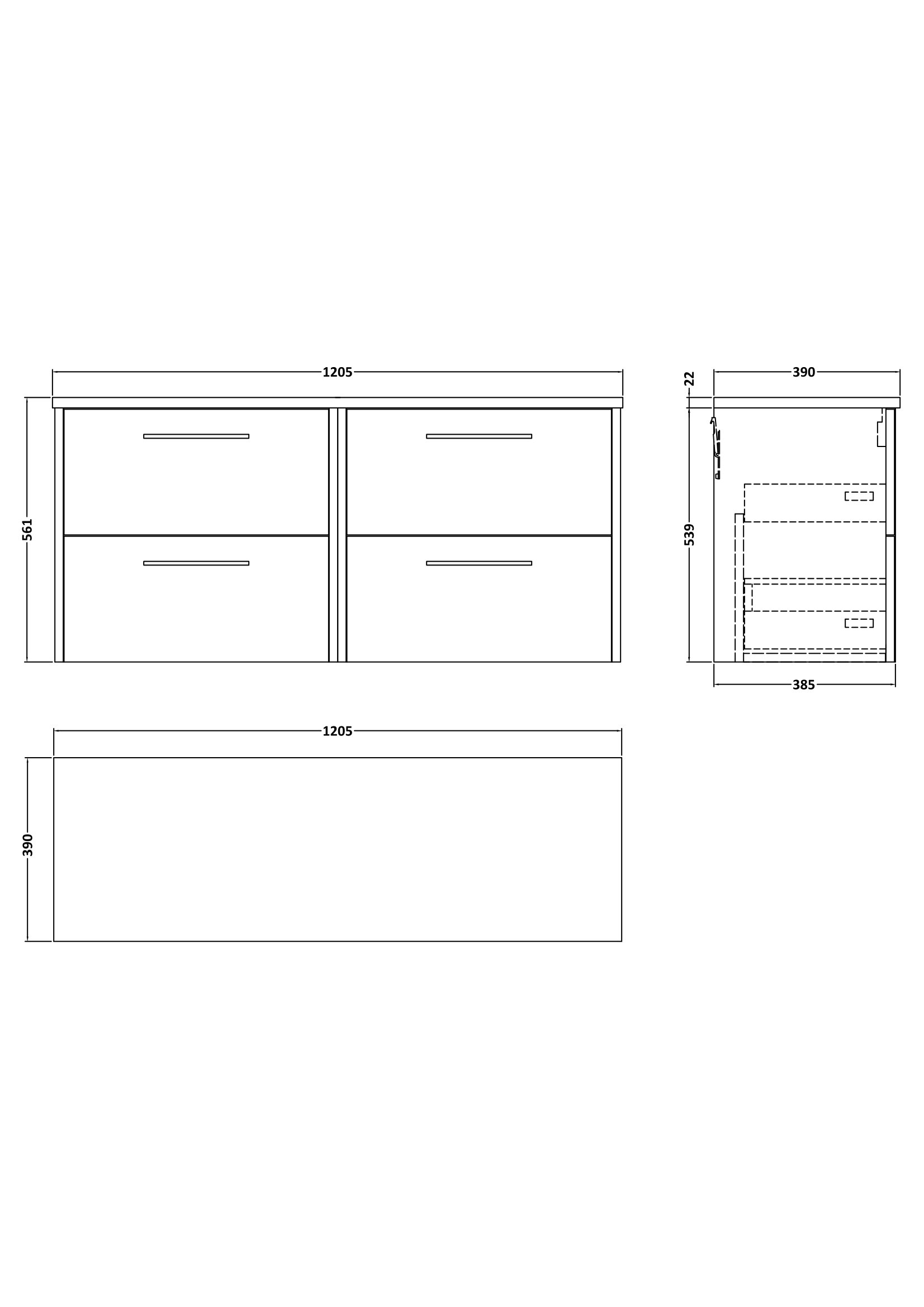 1200 Wall Hung 4-Drawer Vanity & Laminate Worktop