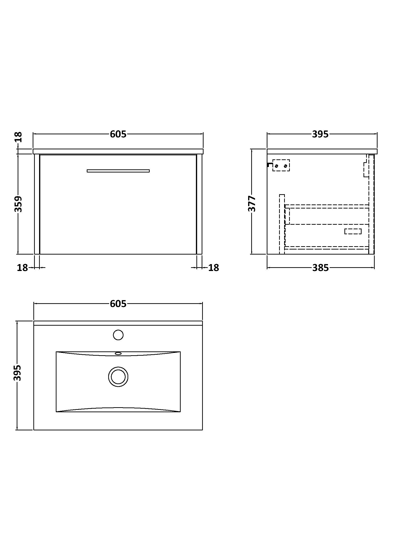 600mm Wall Hung 1 Drawer Vanity & Basin 2