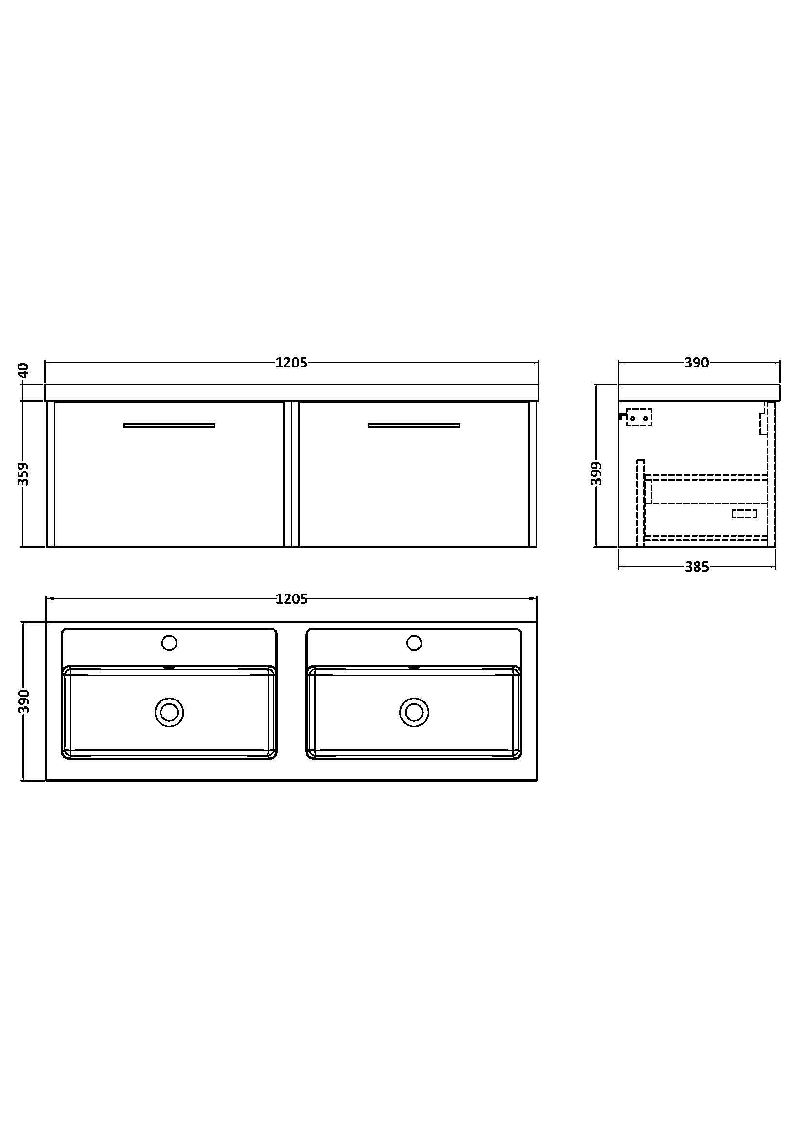 1200mm Wall Hung 2-Drawer Vanity & Double Basin