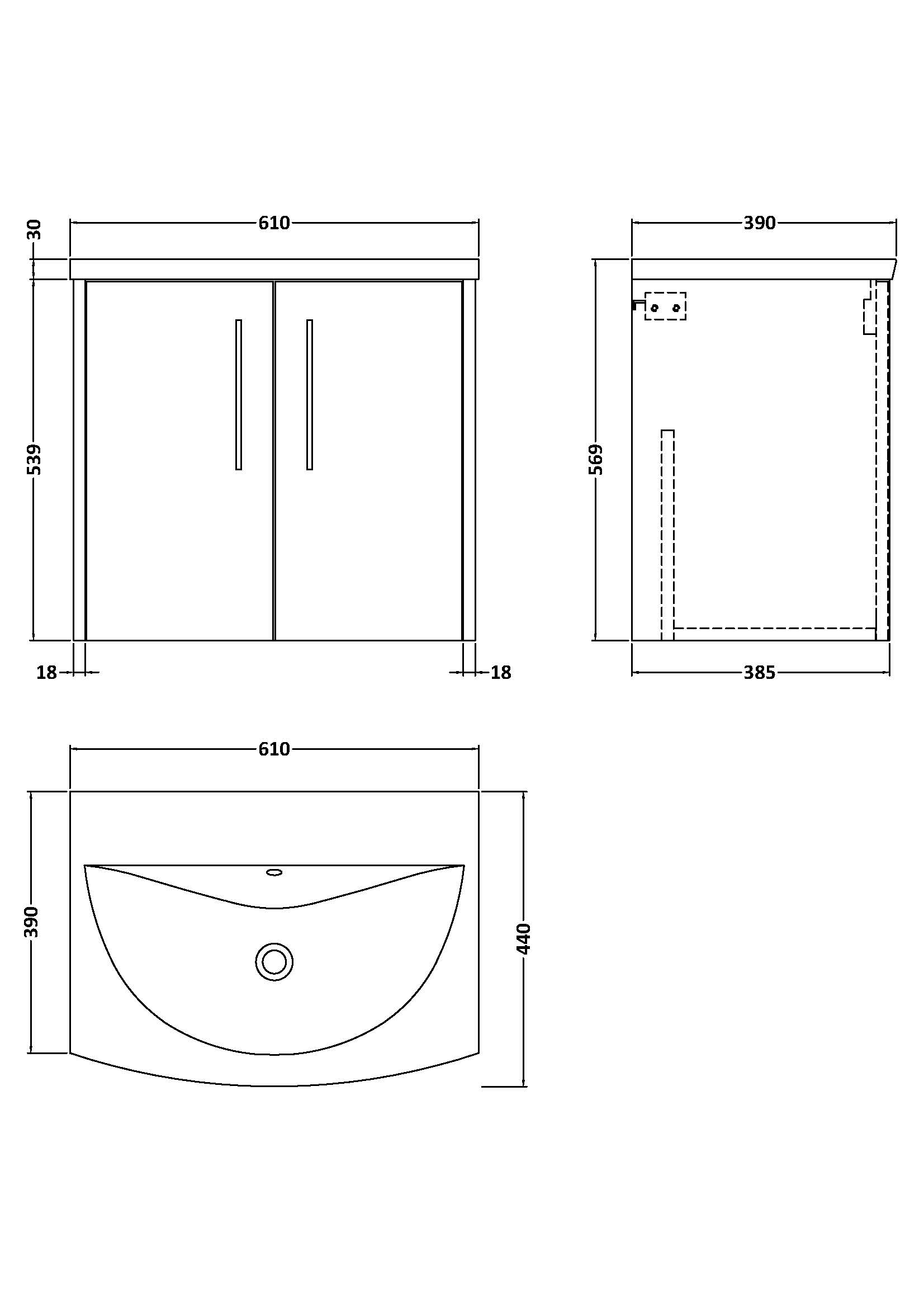 600mm Wall Hung 2-Door Vanity & Basin 4