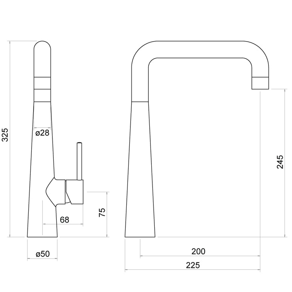 Spout projection: 200mm.