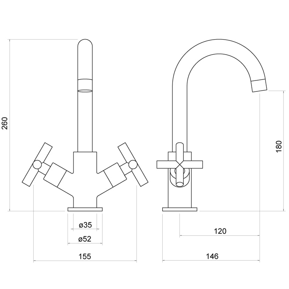 Crosshead handles giving a timeless symmetry to your bathroom or kitchen.