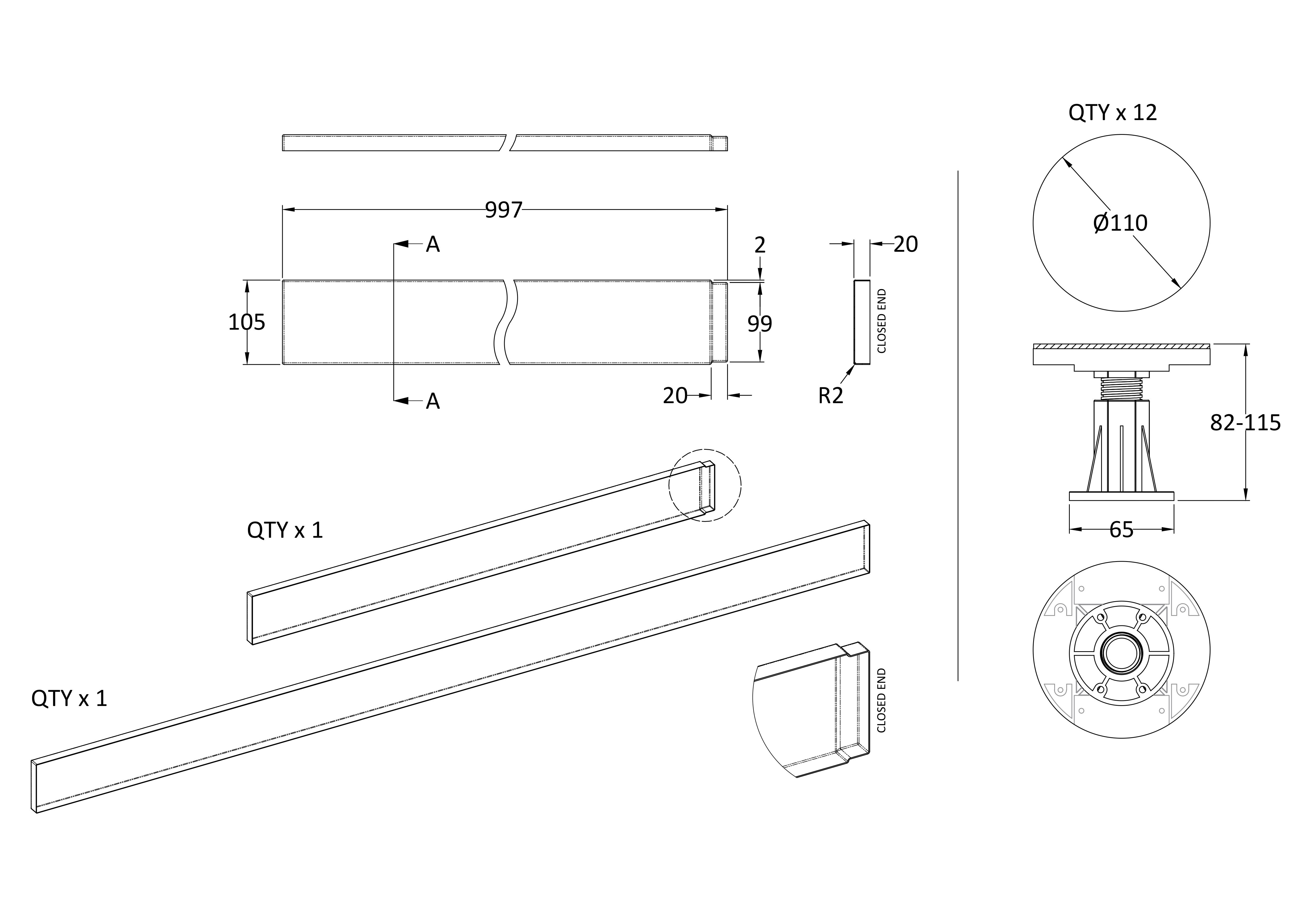 Suitable for use with 1300mm to 1800mm Rectangular & Walk in Trays.