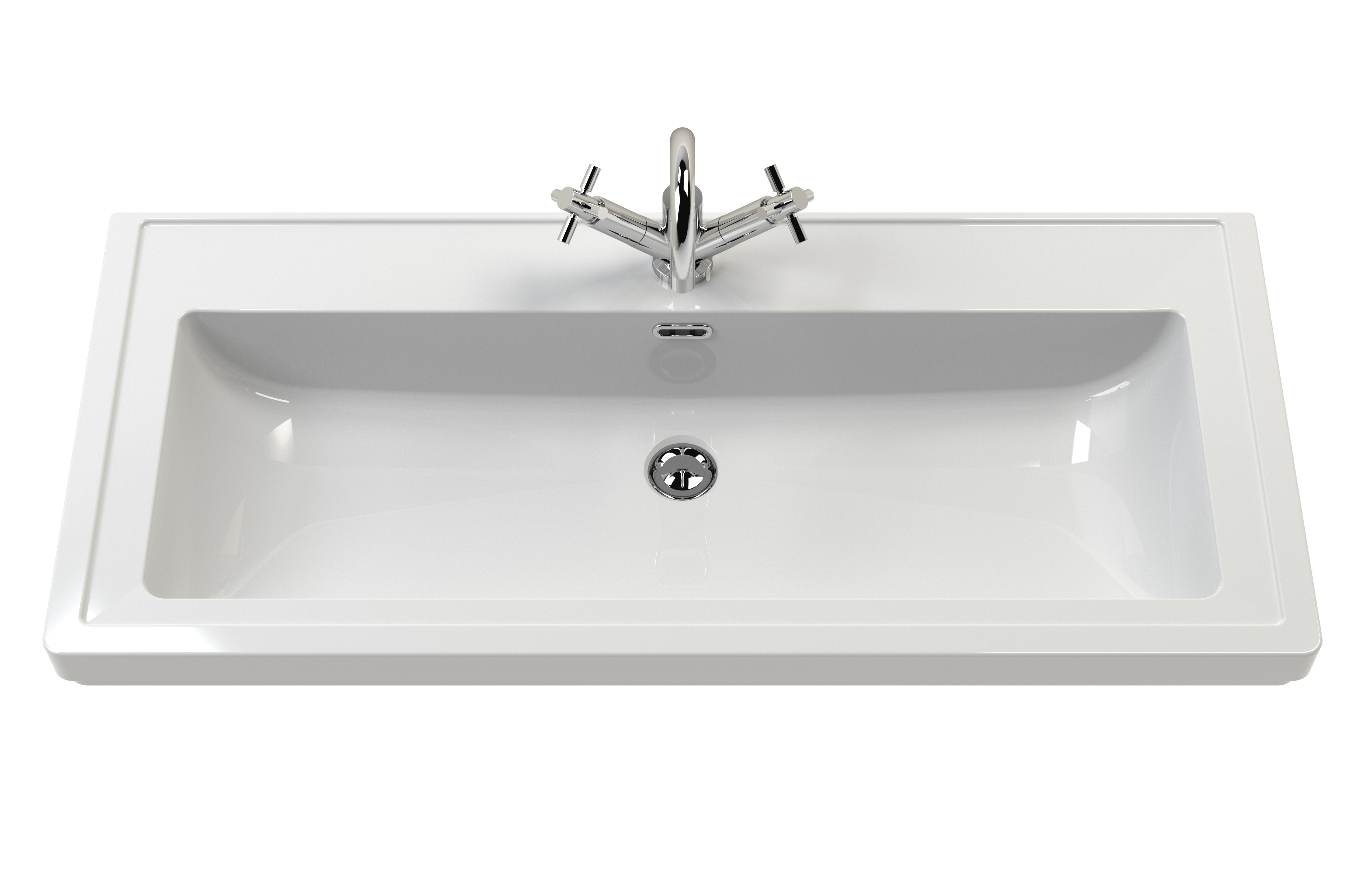 This unit is supplied with fireclay basin, pre-drilled with three tap holes.