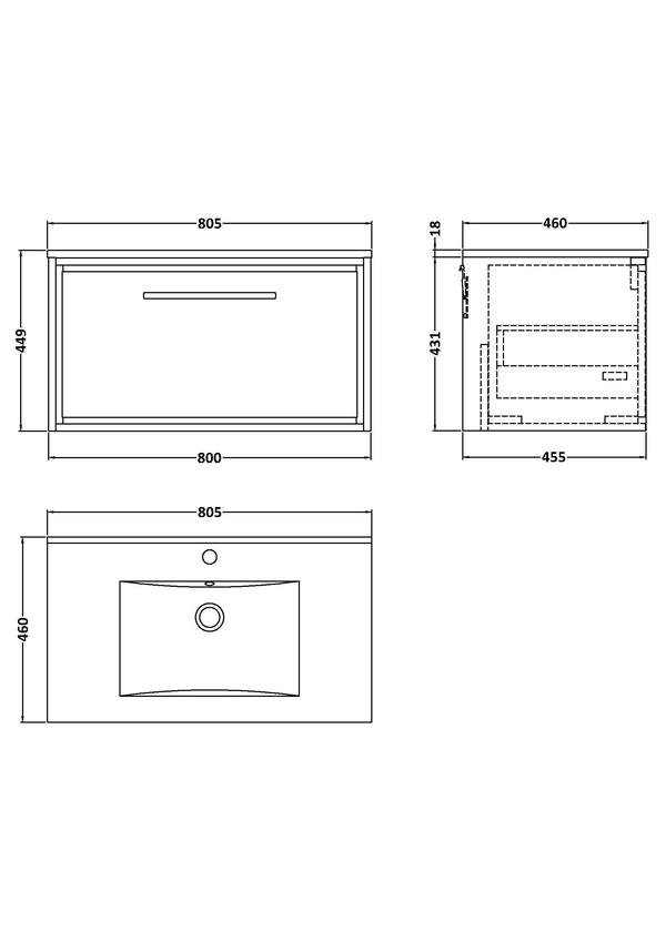 Lille 800mm Wall Hung Single Drawer Vanity with Basin - 1 Tap Hole