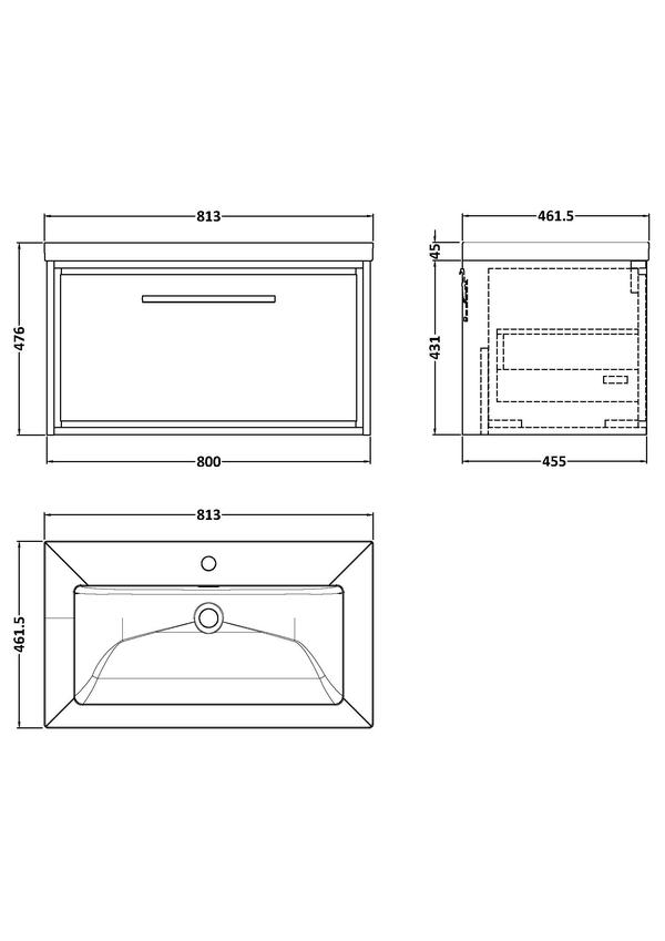 Lille 800mm Wall Hung Single Drawer Vanity with Basin - 1 Tap Hole