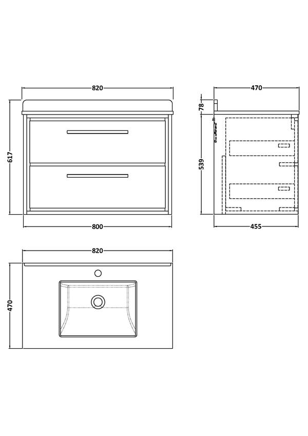 Lille 800mm Wall Hung 2-Drawer Vanity with Marble Worktop Basin