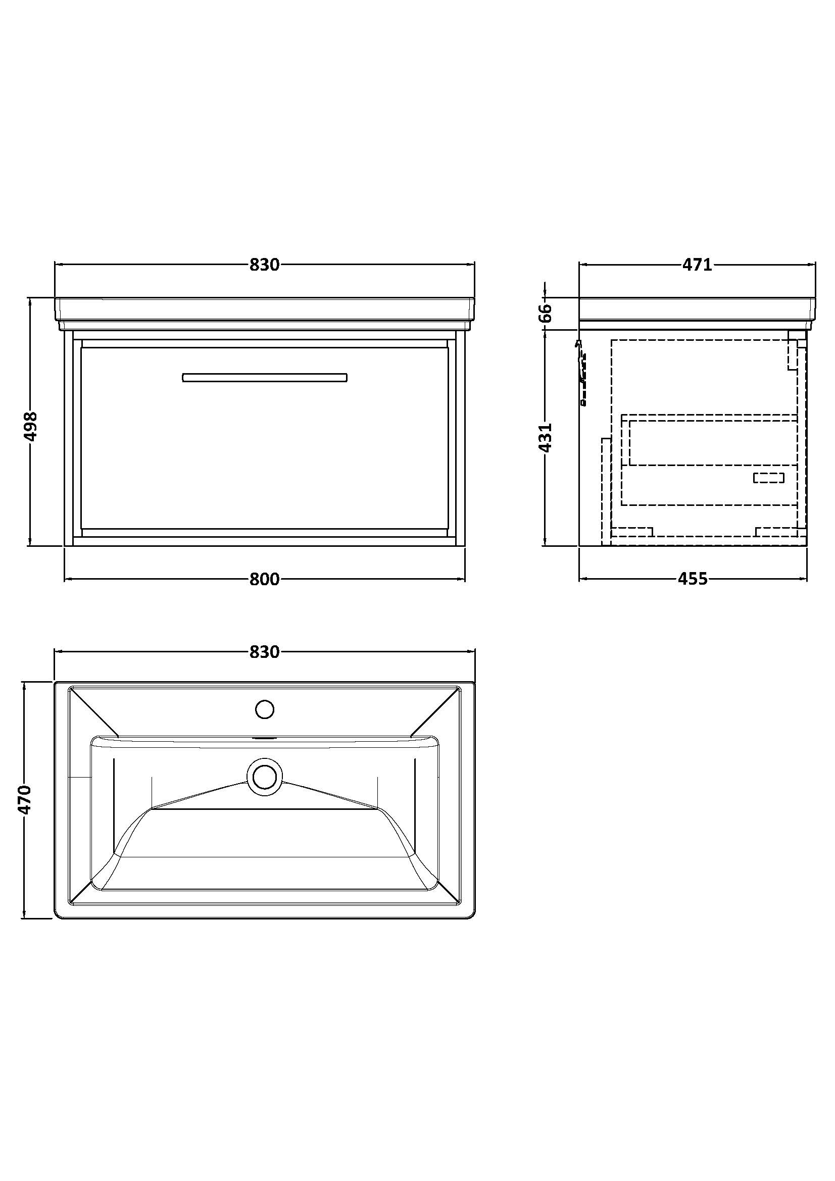 800mm Wall Hung Single Drawer Vanity with Basin - 1 Tap Hole