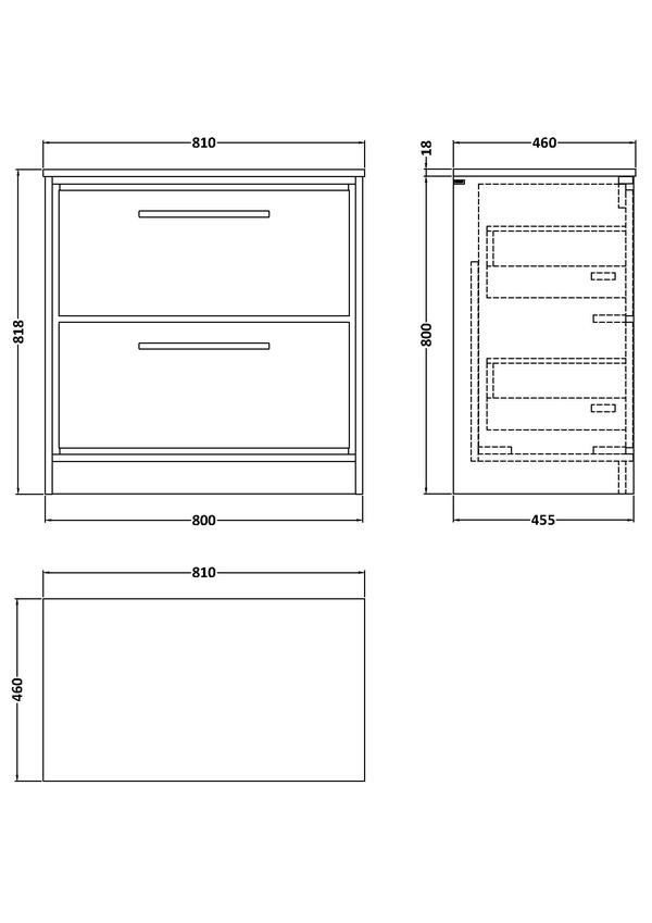 Lille 800mm Floor Standing 2-Drawer Vanity with Marble Worktop
