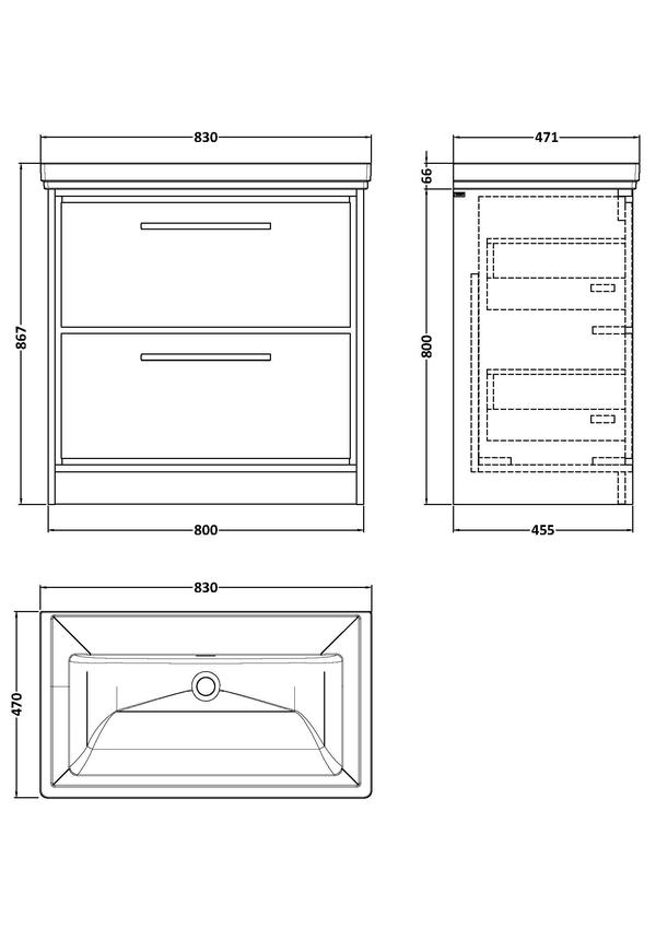 Lille 800mm Floor Standing 2-Drawer Vanity with Basin - 0 Tap Hole