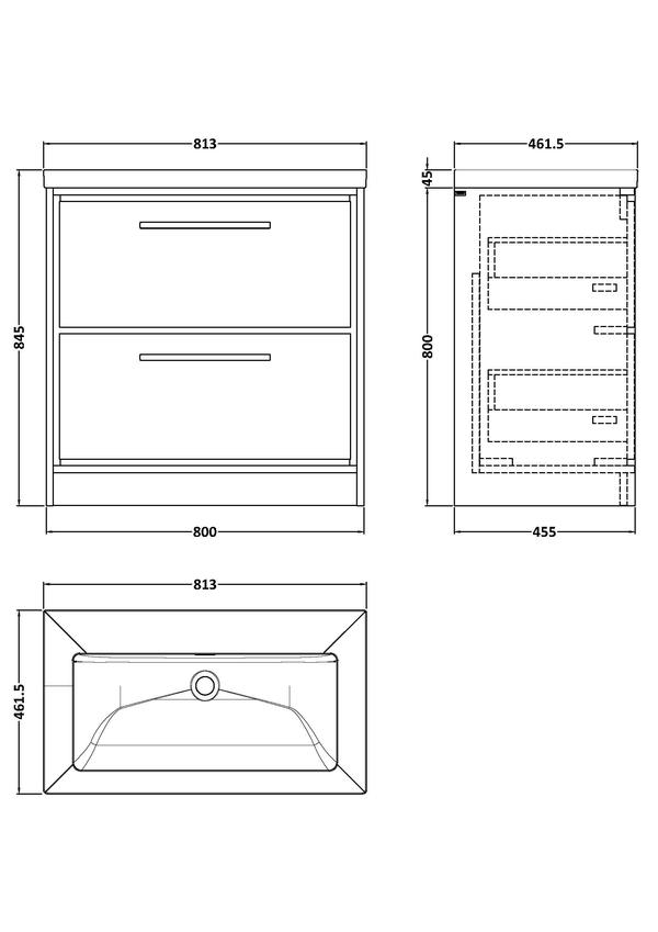 Lille 800mm Floor Standing 2-Drawer Vanity with Basin - 0 Tap Hole