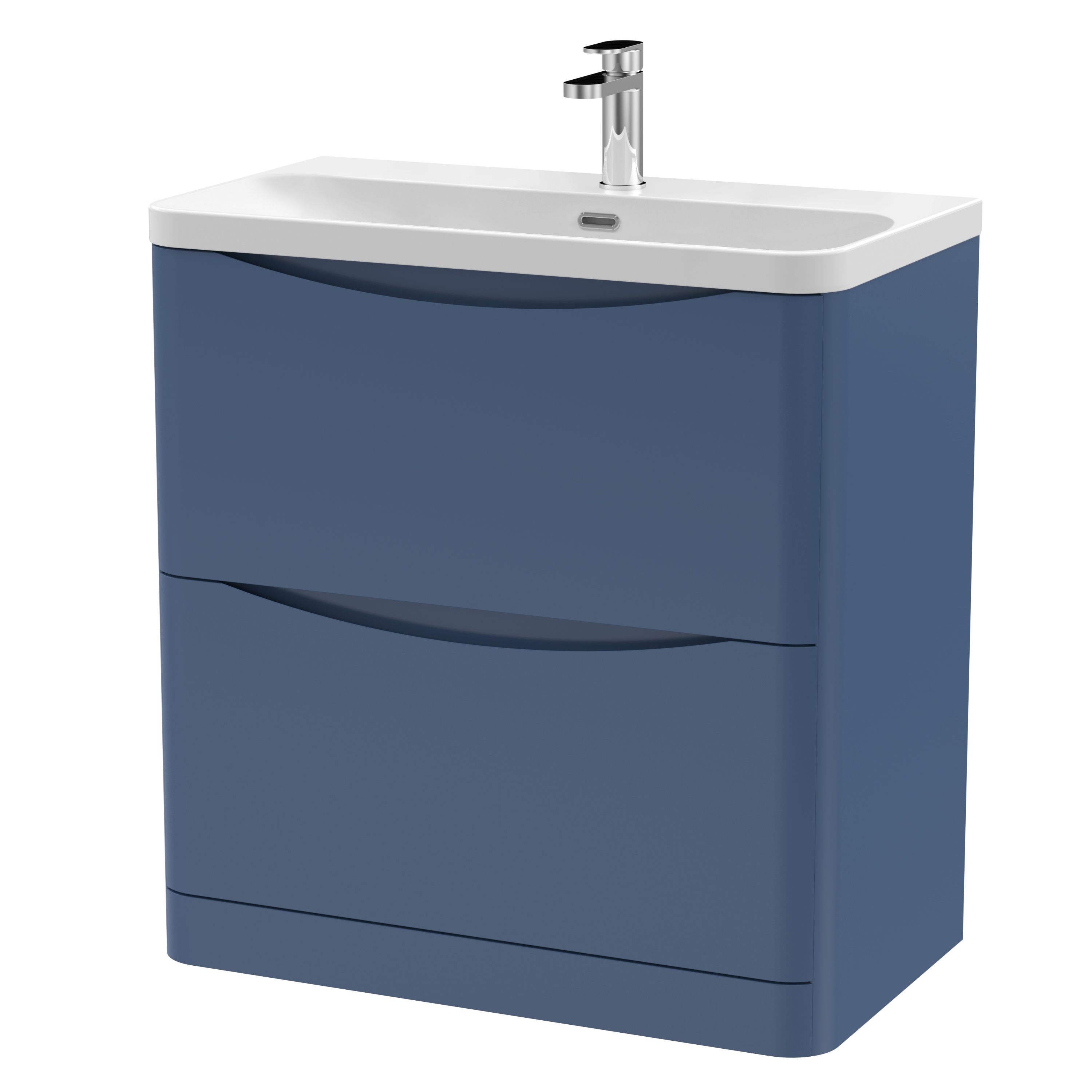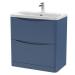 Nuie Lunar 800mm Satin Blue Floor Standing 2 Drawer Vanity Unit With Ceramic Basin