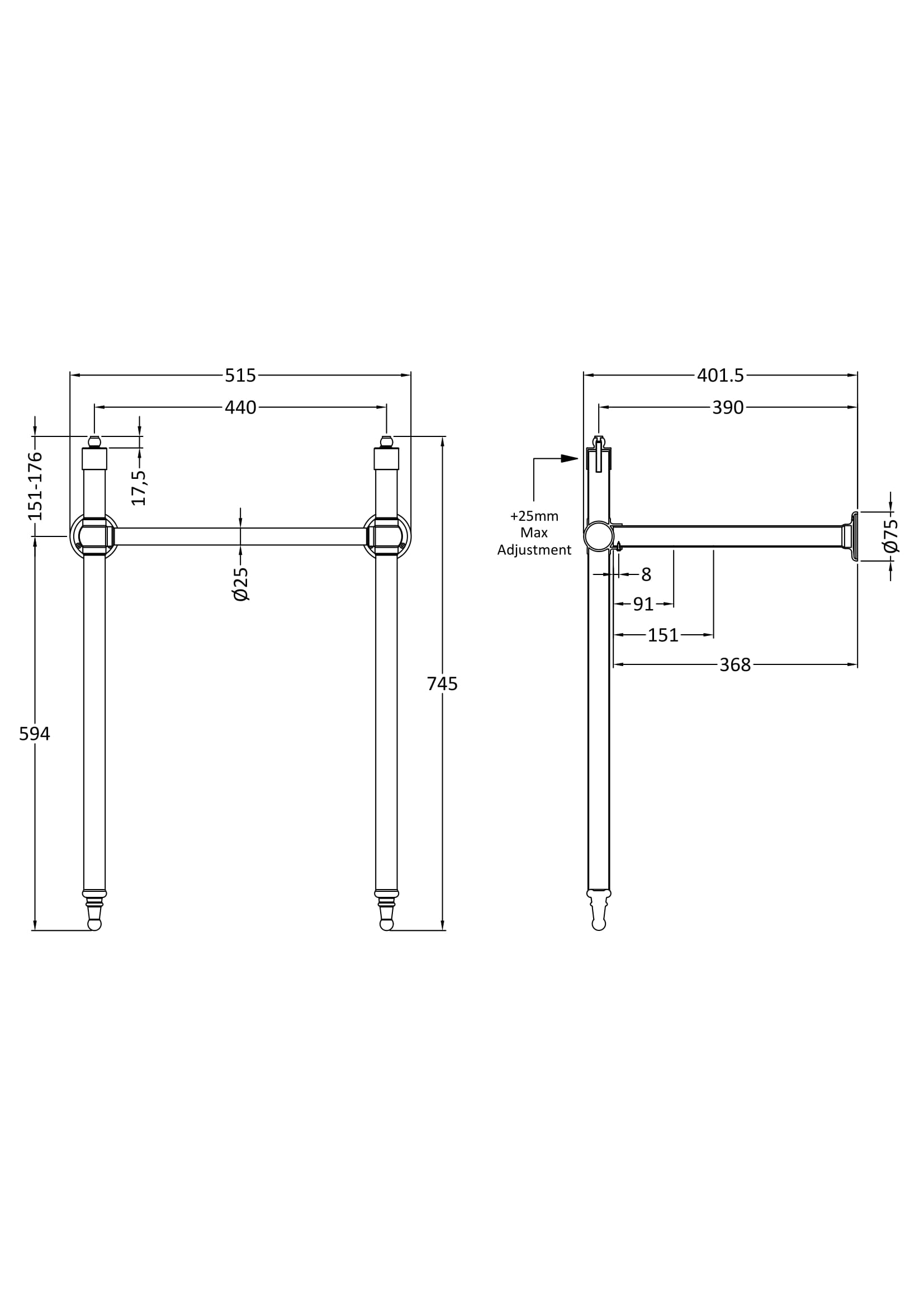 Washstand can be used with 500, 515 and 560mm basins.