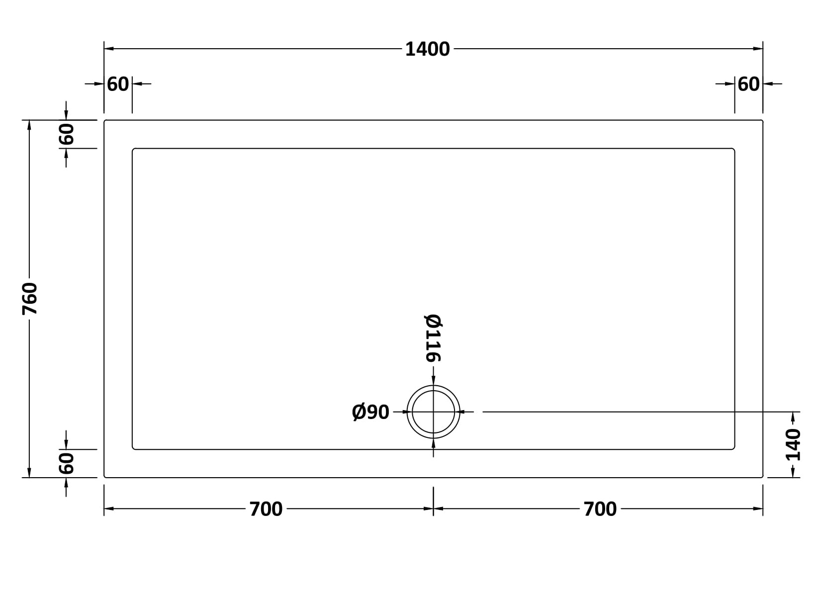 Slip Resistant Rectangular Shower Tray 1400 x 760mm