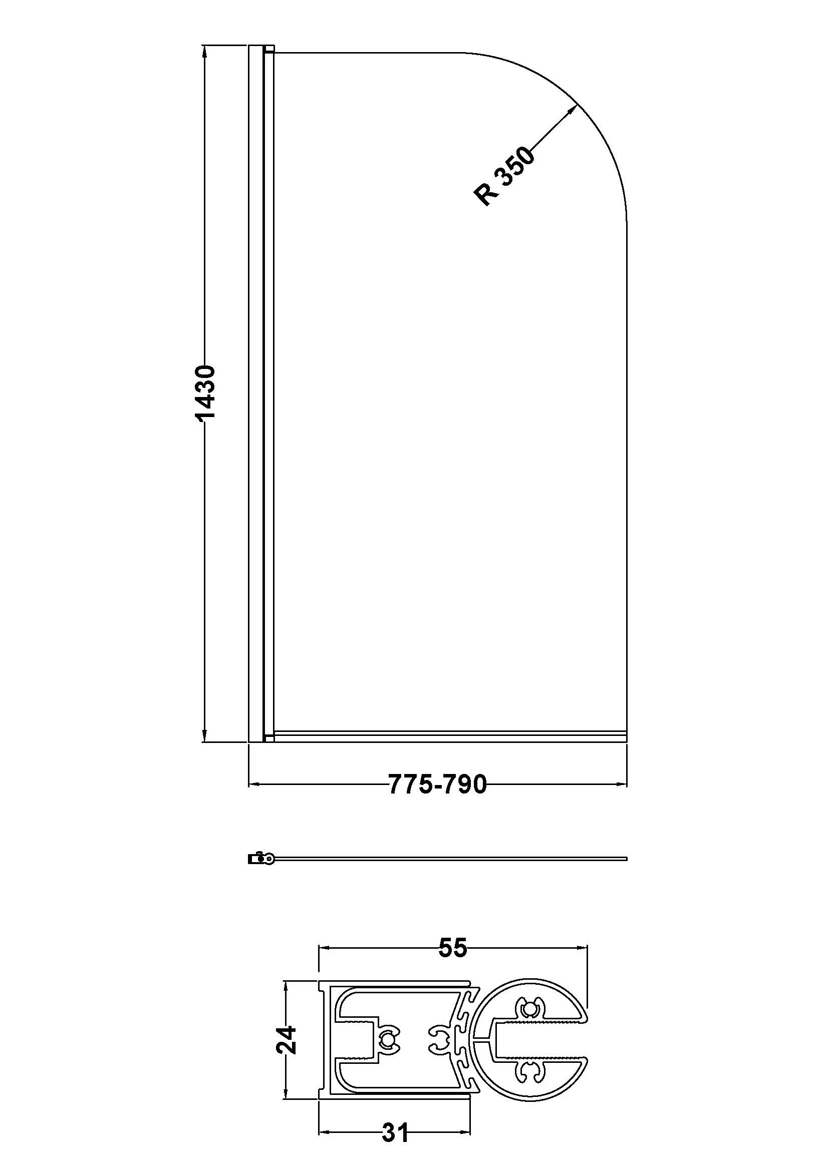 Nuie Round Bath Screen 1430 mm X 790 mm