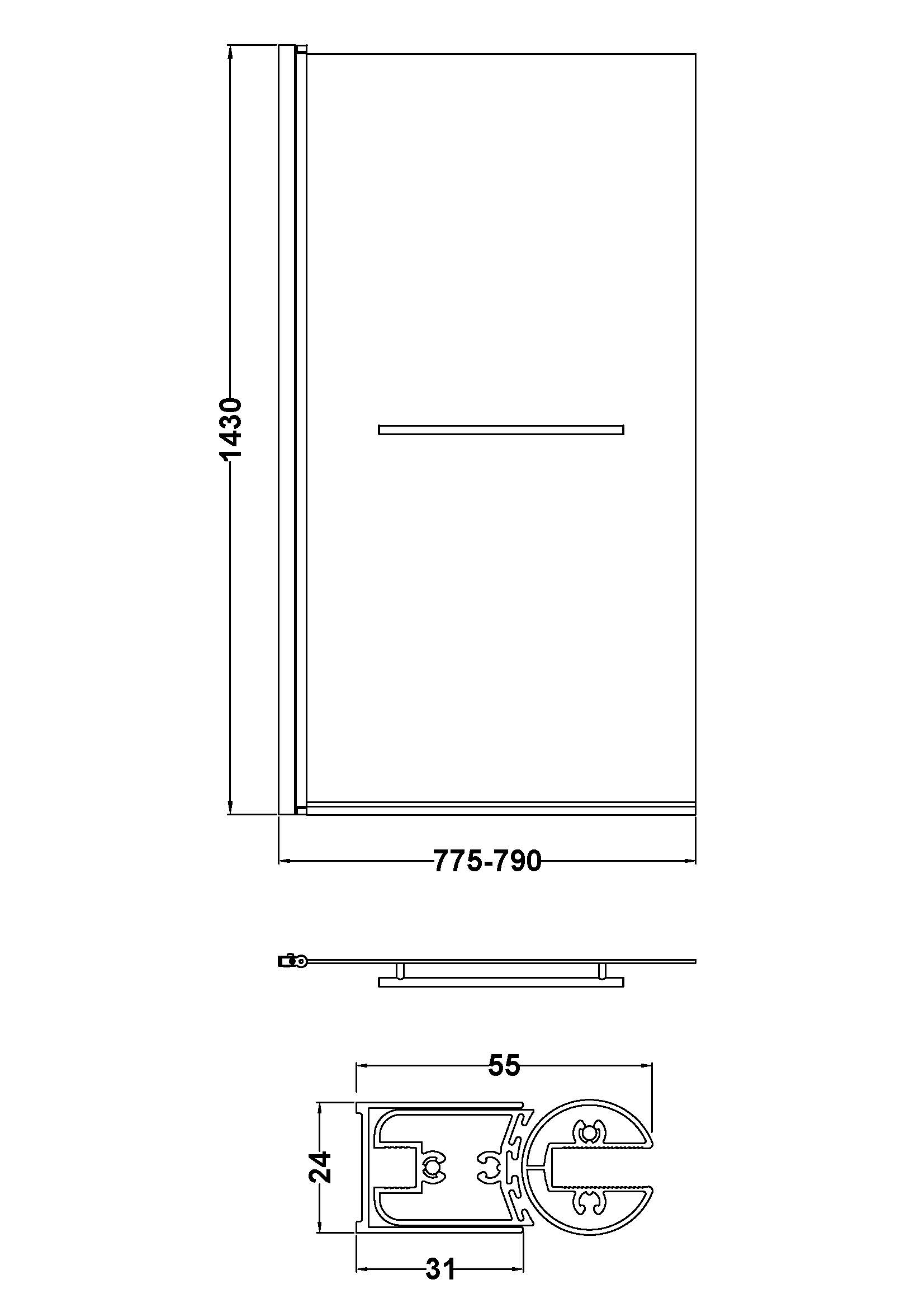 Nuie Square Bath Screen With Rail 1430 mm X 790 mm