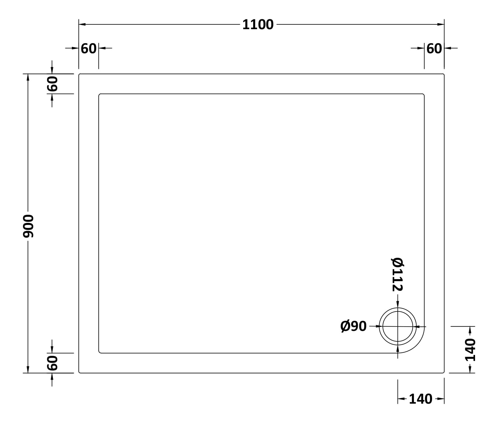 Rectangular Shower Tray 1100 x 900mm by Ultra