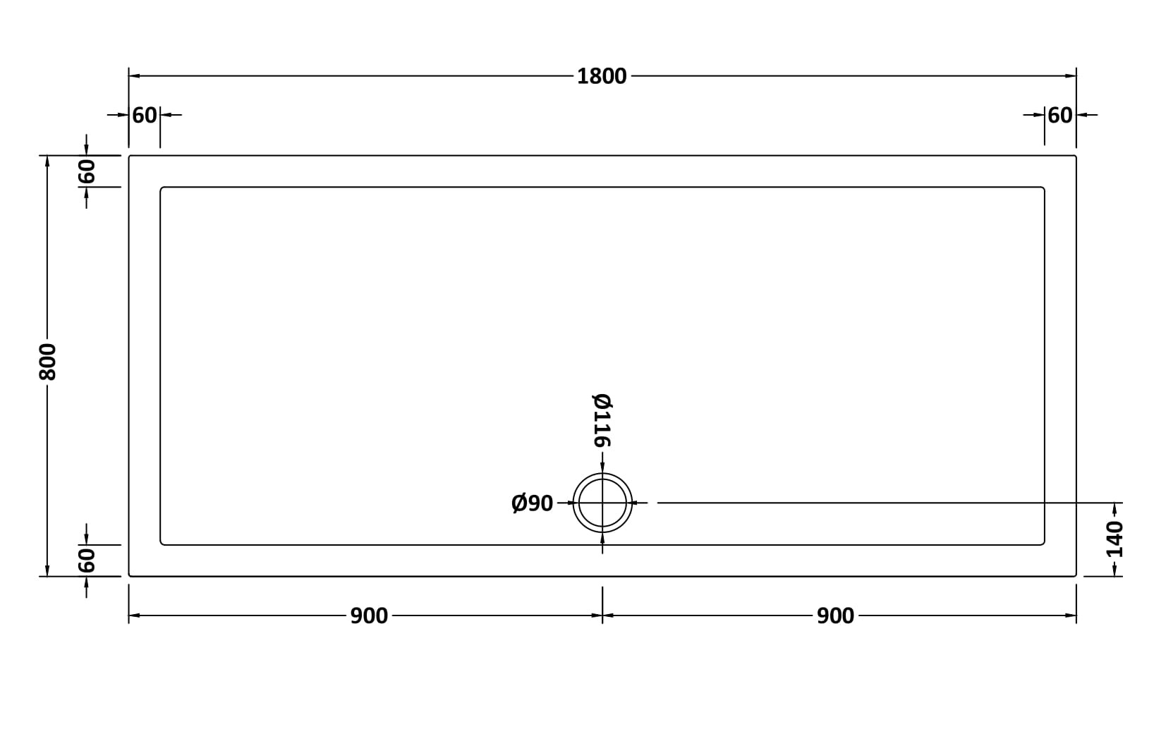 Rectangular Shower Tray 1800 x 800mm by Ultra