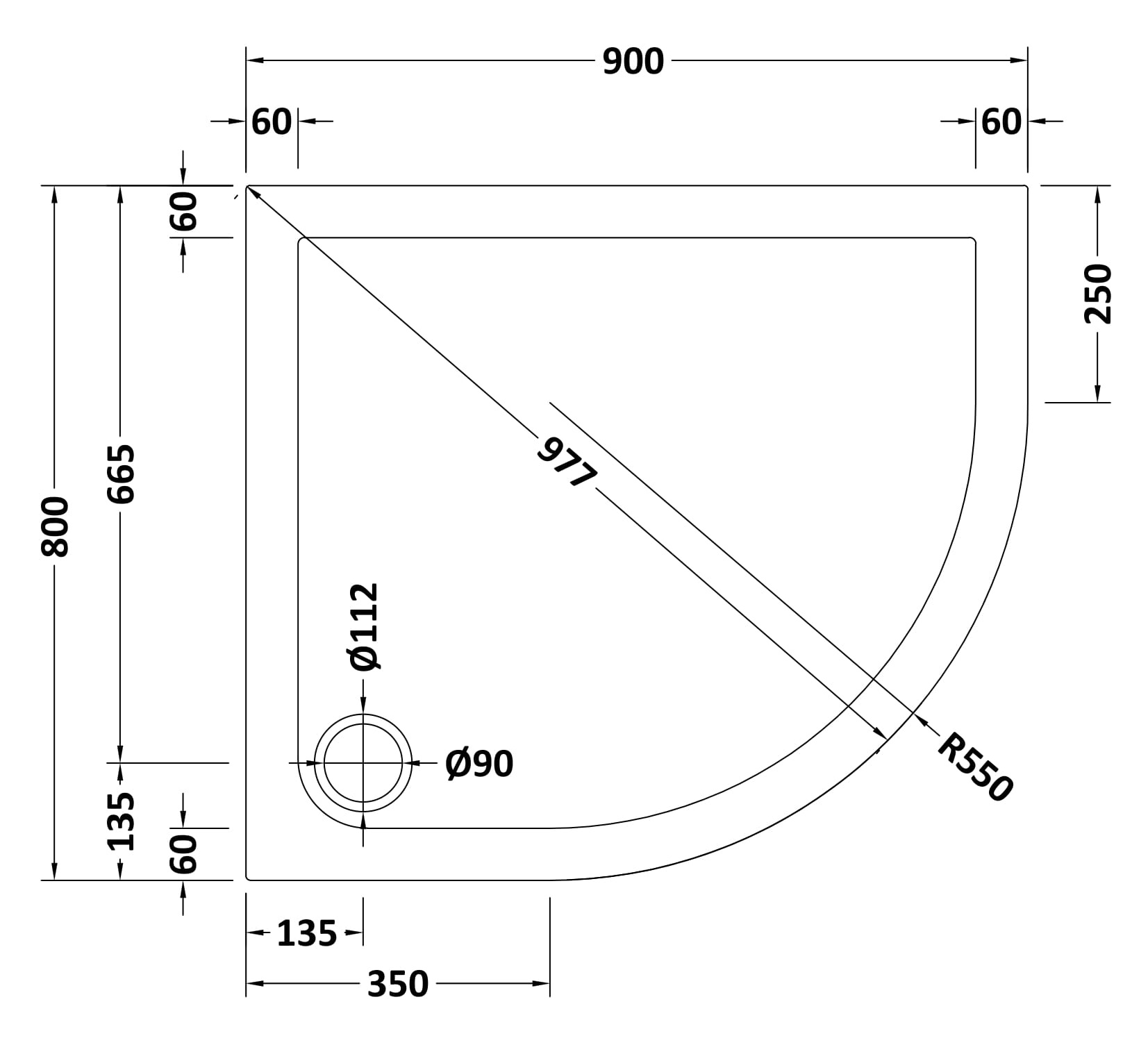 Offset Quad Shower Tray RH 900 x 800mm