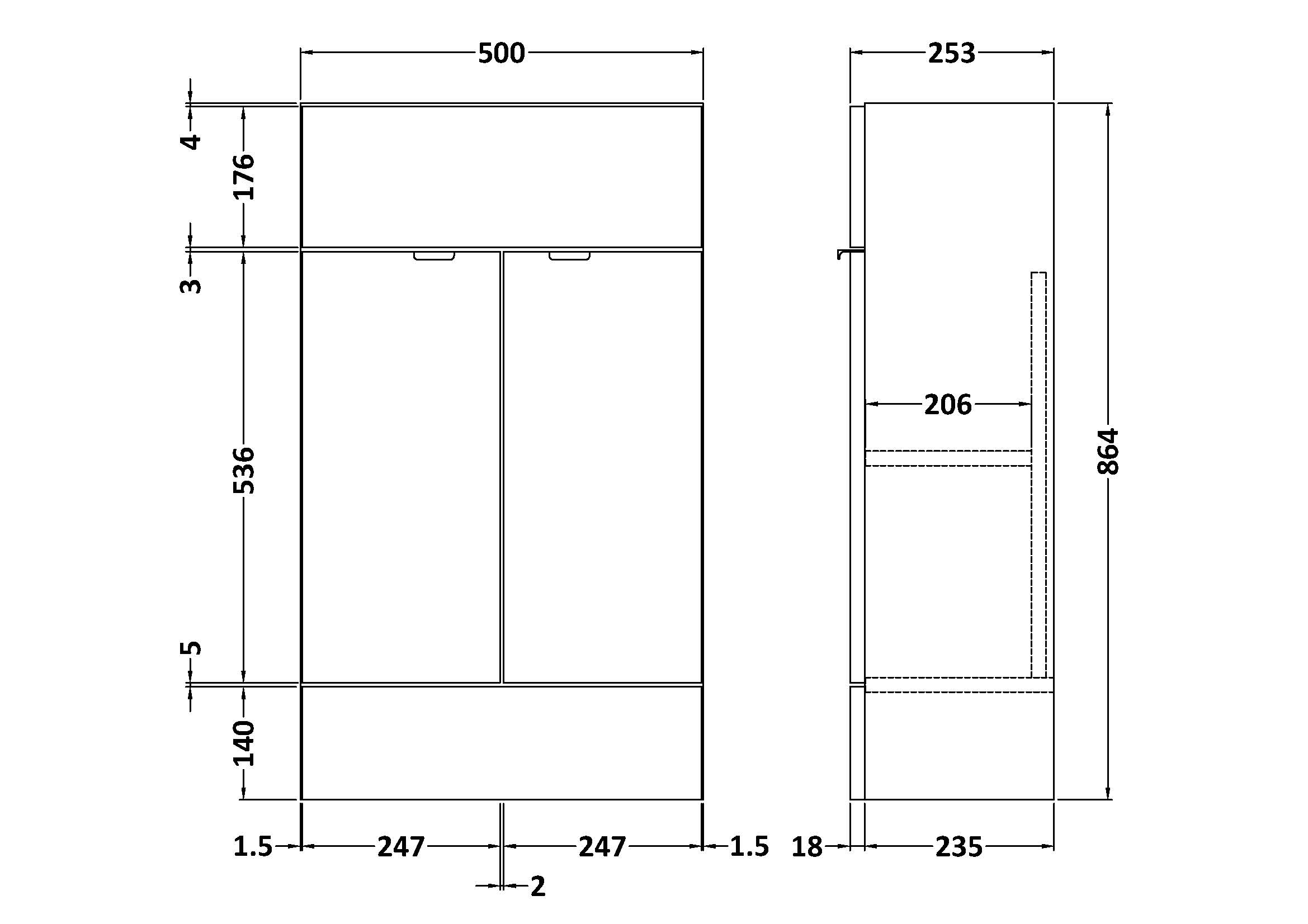 This vanity unit can be fitted with either a polymarble basin for easy installation or a semi recessed basin and worktop for a more unique look.