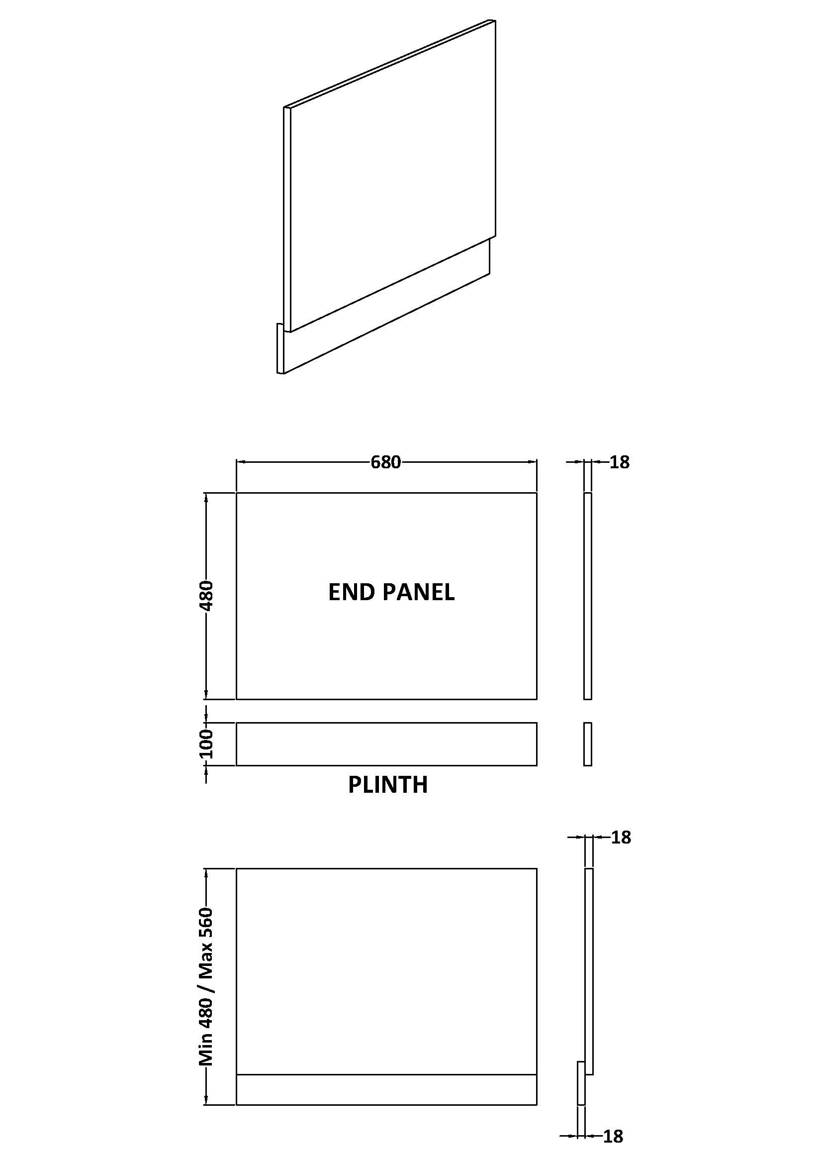 700mm Bath End Panel
