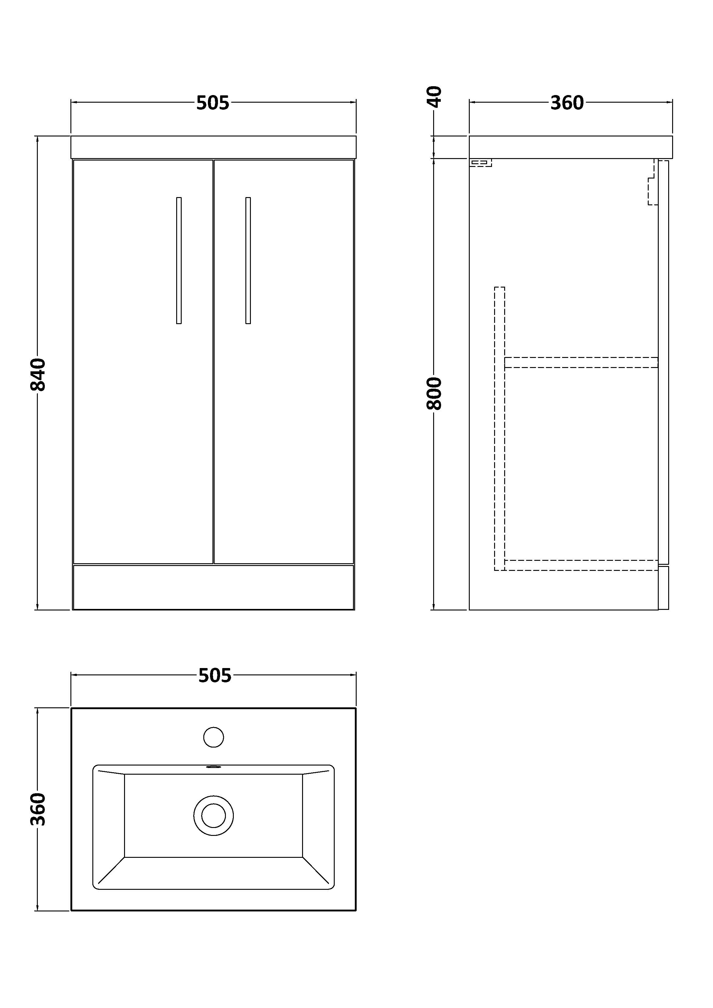 500mm Floor Standing 2 Door Vanity & Ceramic Basin by Ultra