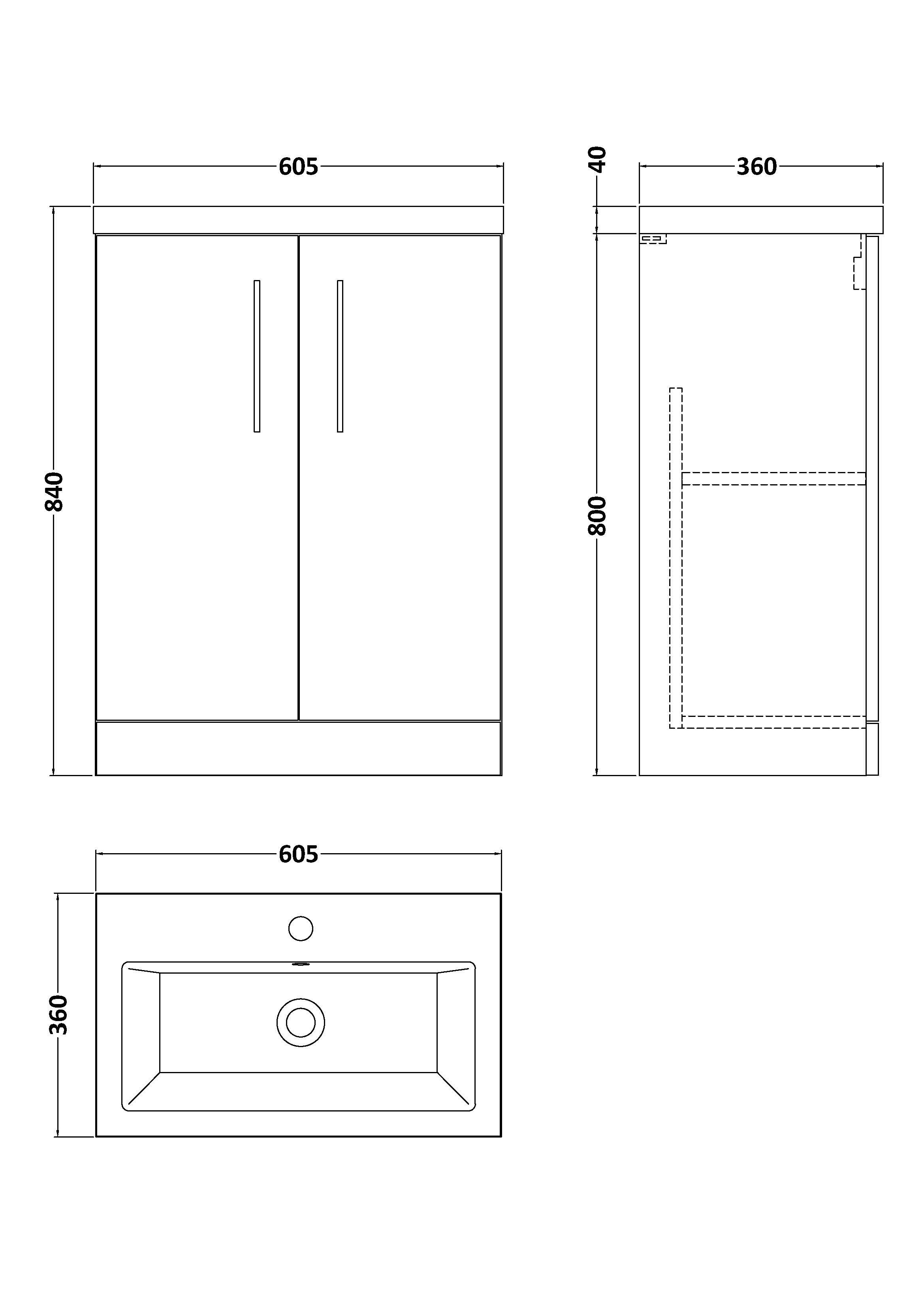 600mm Floor Standing 2 Door Vanity & Ceramic Basin by Ultra