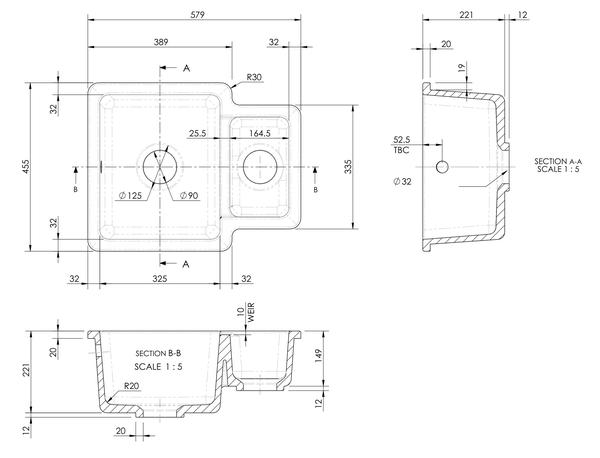 Undermount 1.25 Bowl Sink with Overflow 548 x 442 x 197