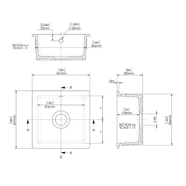 Undermount Single Bowl with Overflow 457x457x203 by Ultra