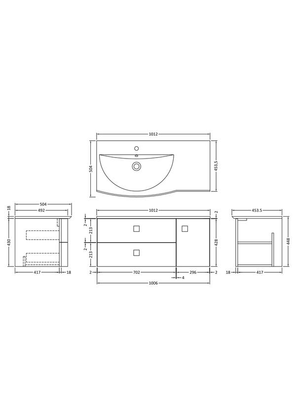 Hudson Reed Sarenna 1000mm Left Hand 2 Drawer 1 Door Hunter Green Wall Hung Vanity Unit With Basin by Ultra