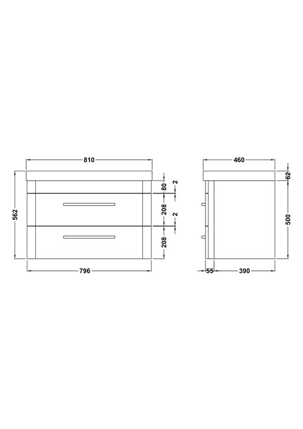 Hudson Reed Solar 810mm Wall Hung 2 Drawer Vanity Unit With Ceramic Basin
