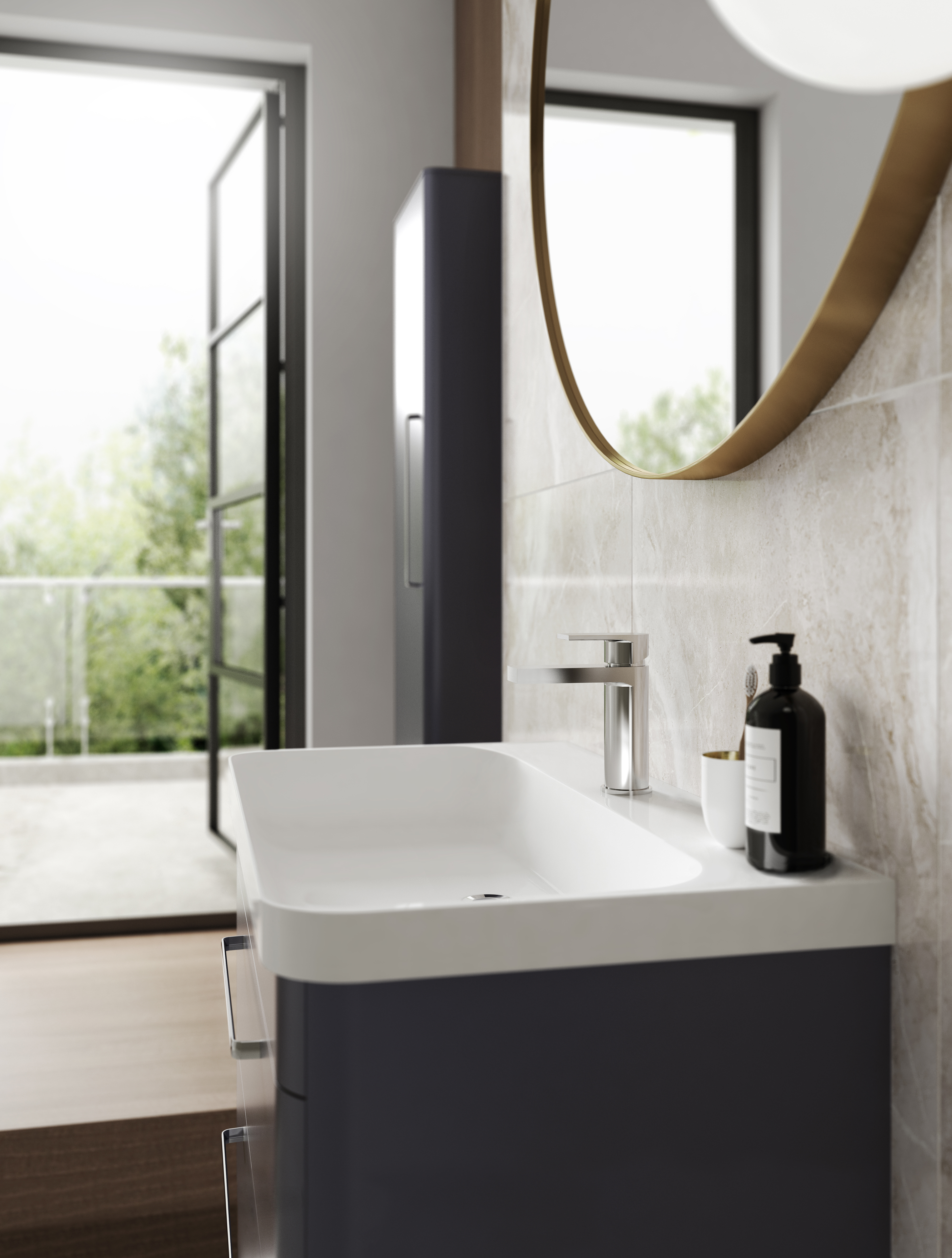 The curved contours of the Solar furniture, combined with the super matt tones, create a unique and contemporary collection.