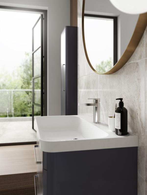 This wall-hung unit creates more space giving the illusion of a bigger bathroom.