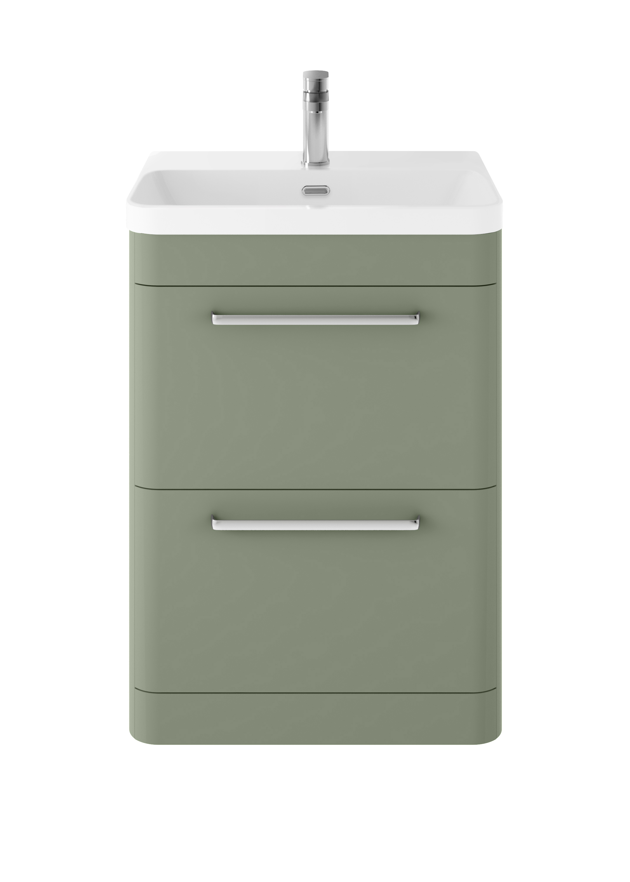 Hudson Reed Solar 600mm Fern Green Floor Standing 2-Drawer Vanity Unit With Ceramic Basin
