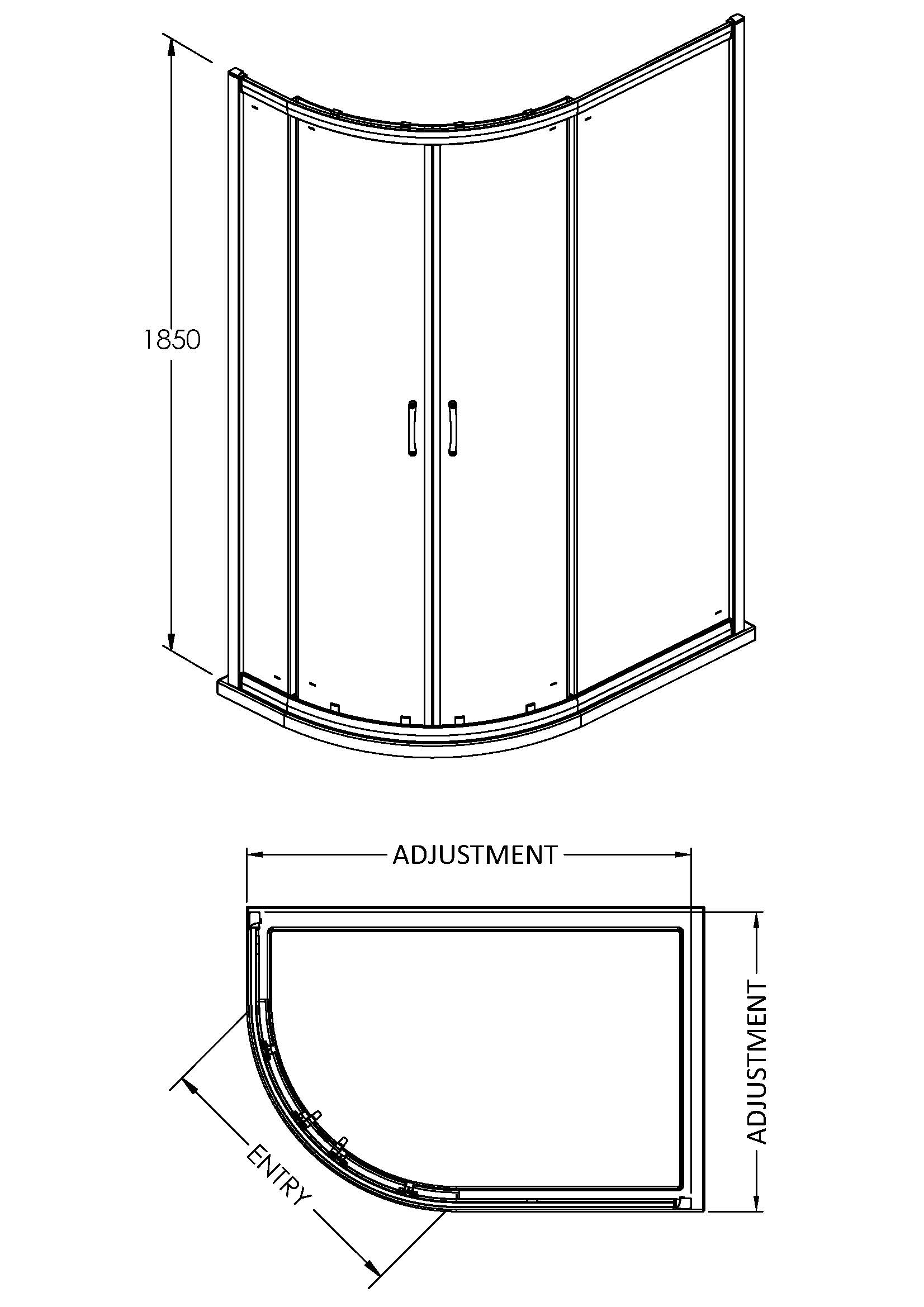 Ella - Chrome 1850 x 1200 x 800mm Offset Quad Enclosure