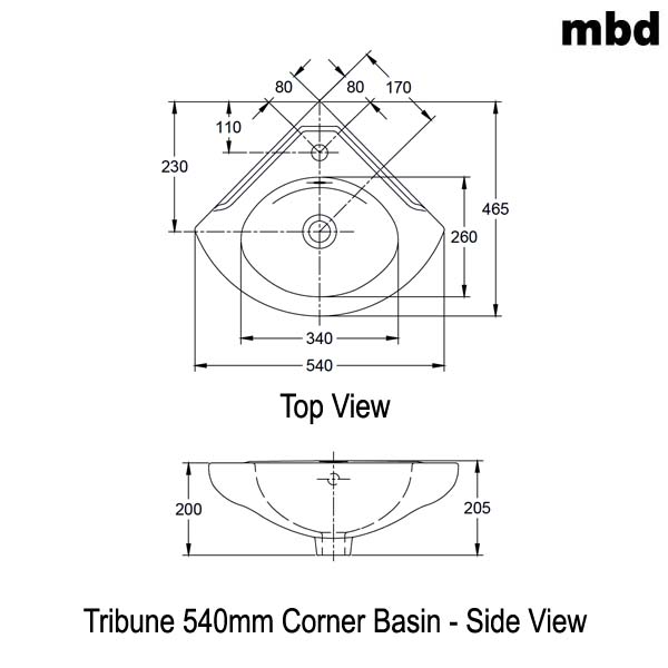 Tribune 540mm Corner Basin & Unislim Pedestal