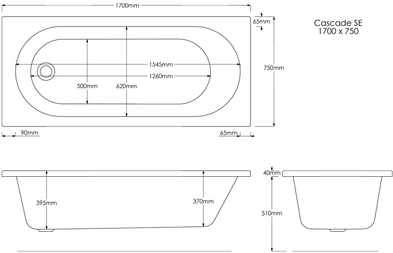 Trojan Cascade Single Ended Bath 1700 x 750