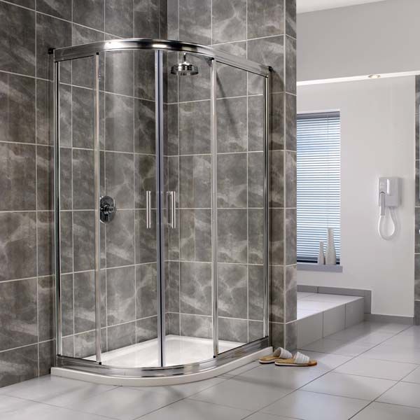 The beautifully curved glass sliding doors optimizes your use of bathroom space... and our Offset design, in five larger sizes gives you the luxury of even more room for relaxed and comfortable showering.