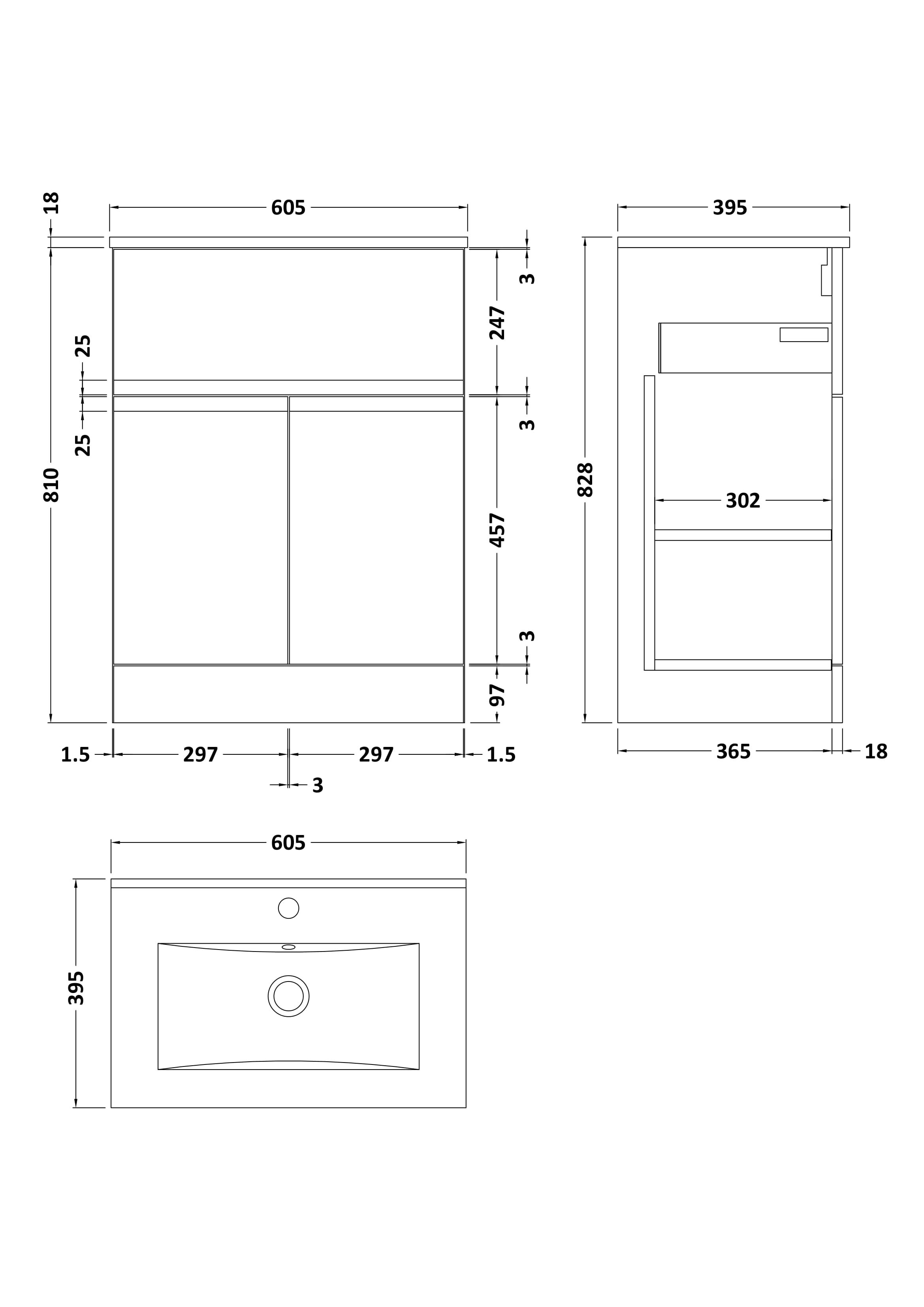 600mm Floor Standing 2-Door/Drawer Vanity Unit & Basin 2
