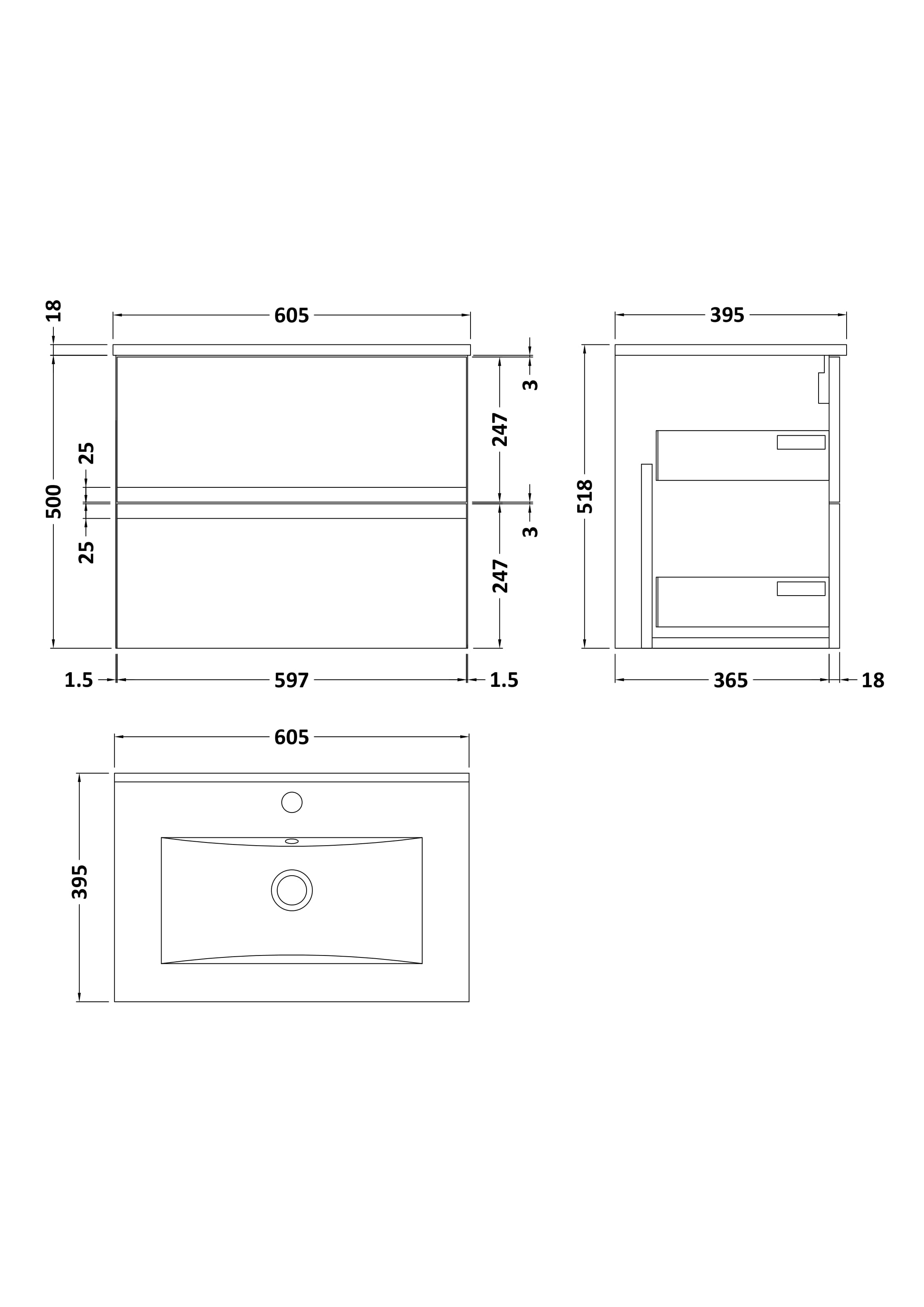 600mm Wall Hung 2-Drawer Vanity Unit & Basin 2