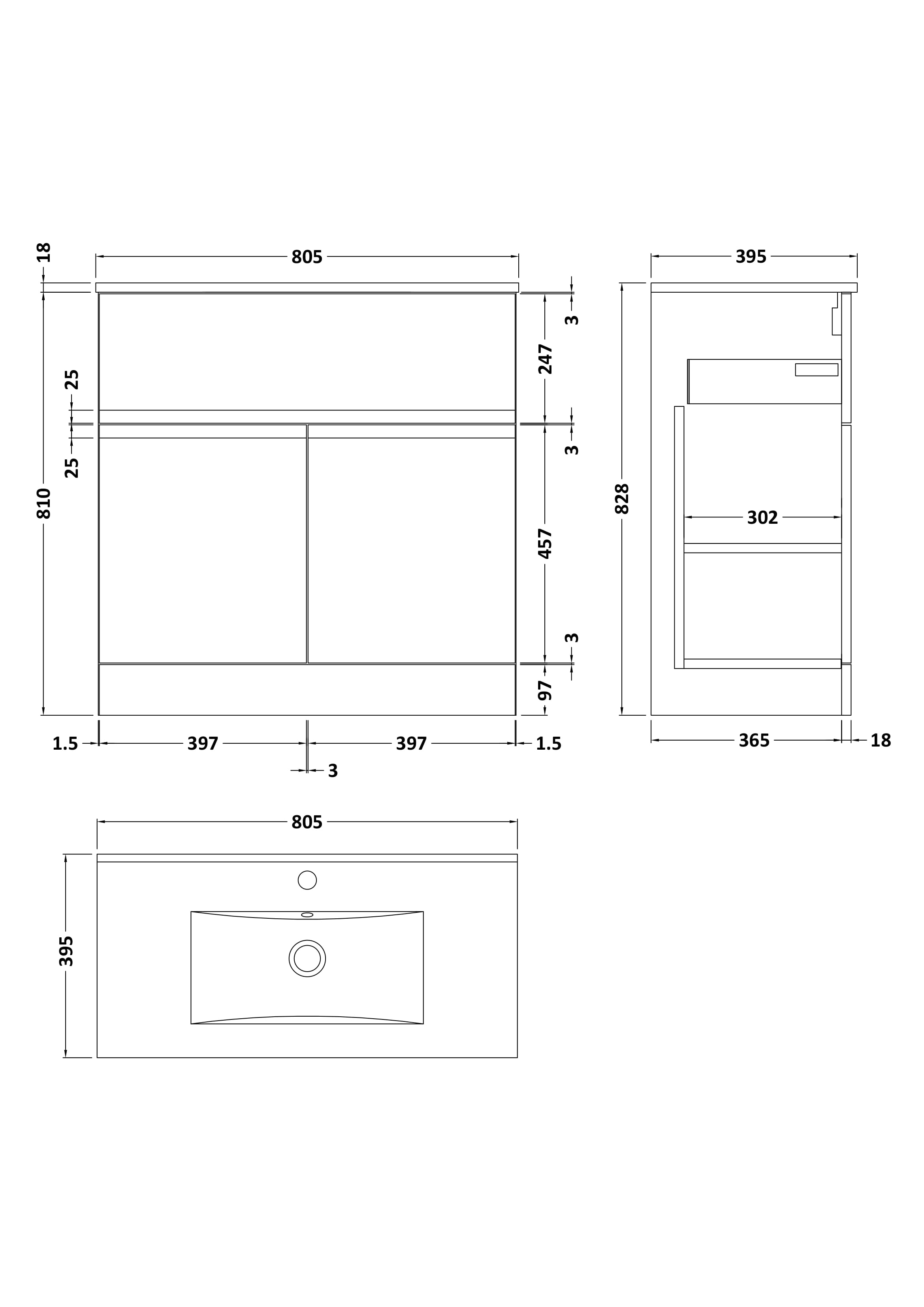 800mm Floor Standing 2-Door Vanity Unit & Basin 2